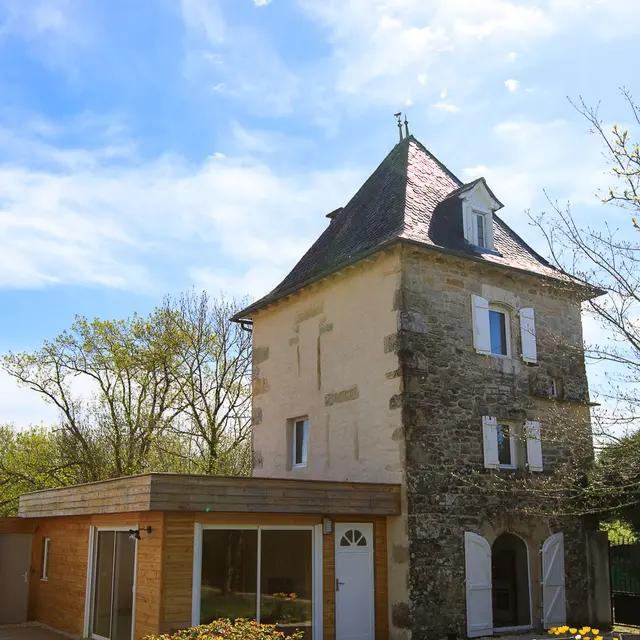 Ancien pigeonnier de 1818 avec extension bois, privé, indépendant et piscine chauffée.