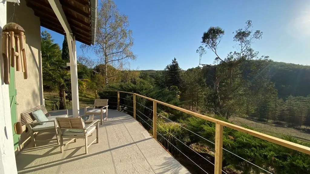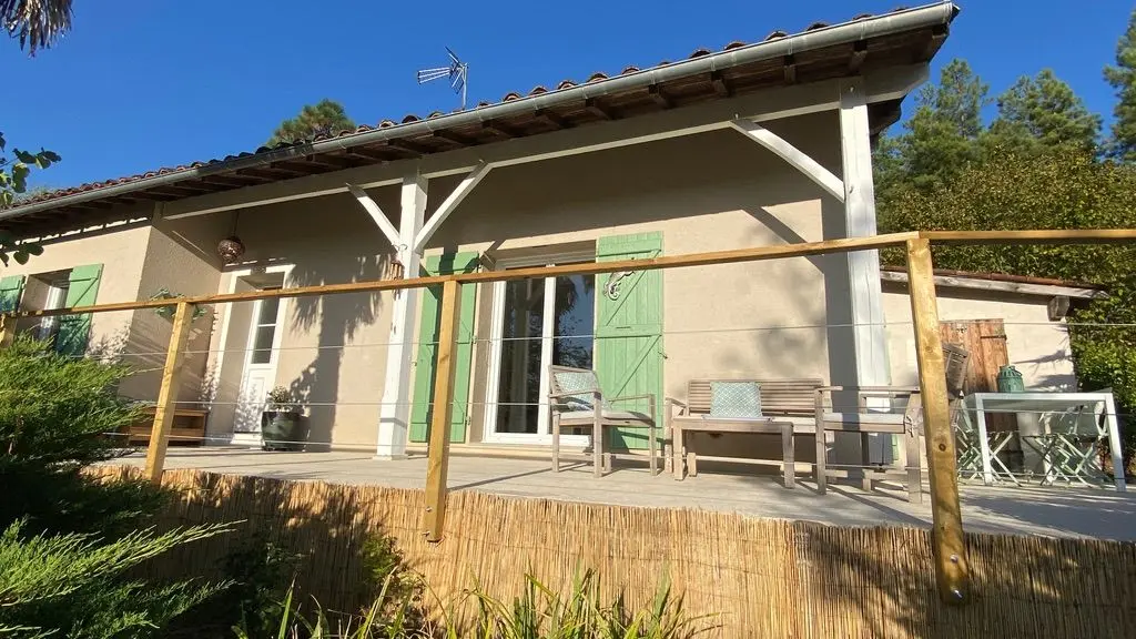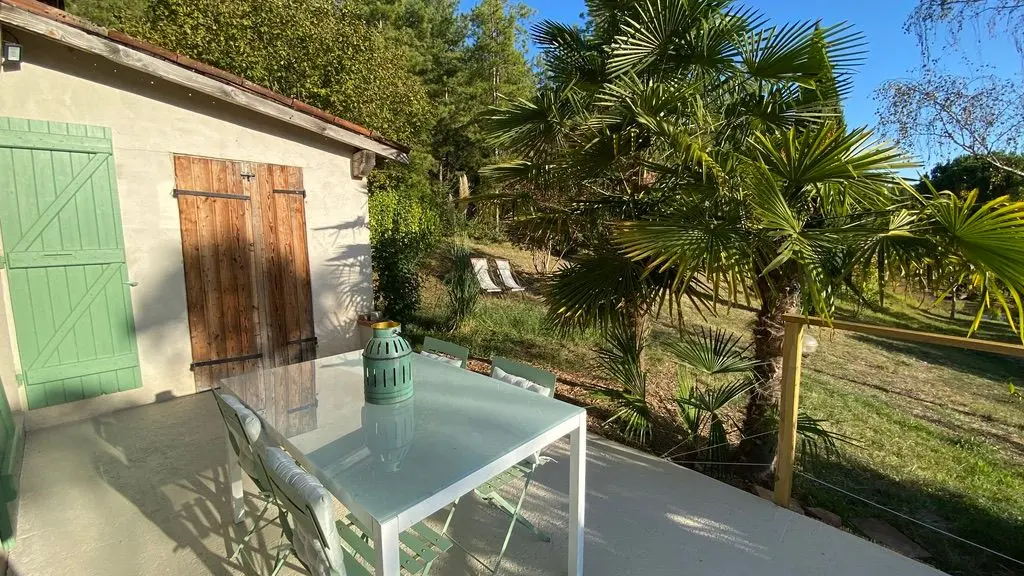 Profitez d'une terrasse avec un salon de détente et un espace repas, mais aussi d'une zone de loisirs avec table et bancs pour pique-niquer (vaisselle spéciale fournie), d'un solarium équipé avec parasol, tapis de sol et matelas, terrain de pétanque et plancha.