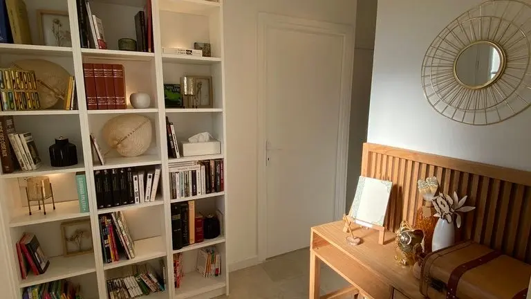 Le logement entièrement de plain-pied comprend une entrée avec bibliothèque fournie pour tous les âges, desservant :