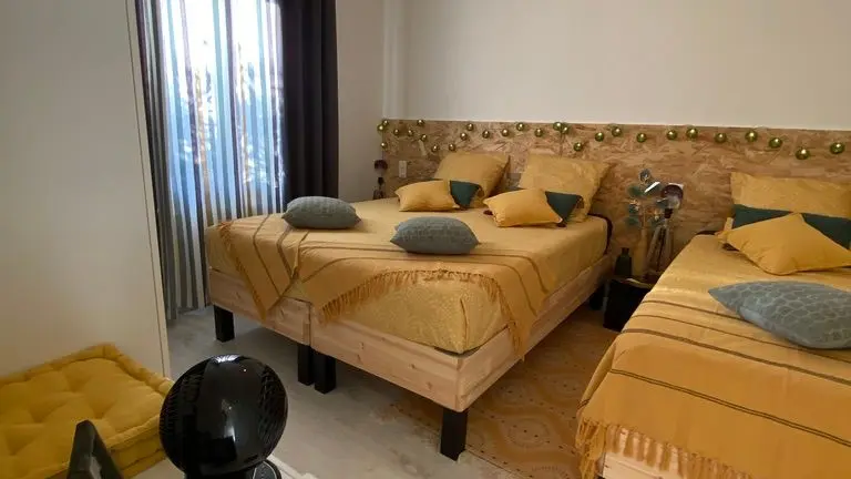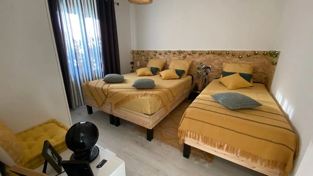 - une chambre (2 lits 80 rapprochables en 160 et 1 lit 90),
