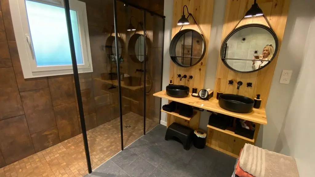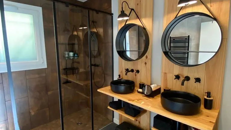 - une salle d'eau avec (douche à l'italienne, 2 vasques),