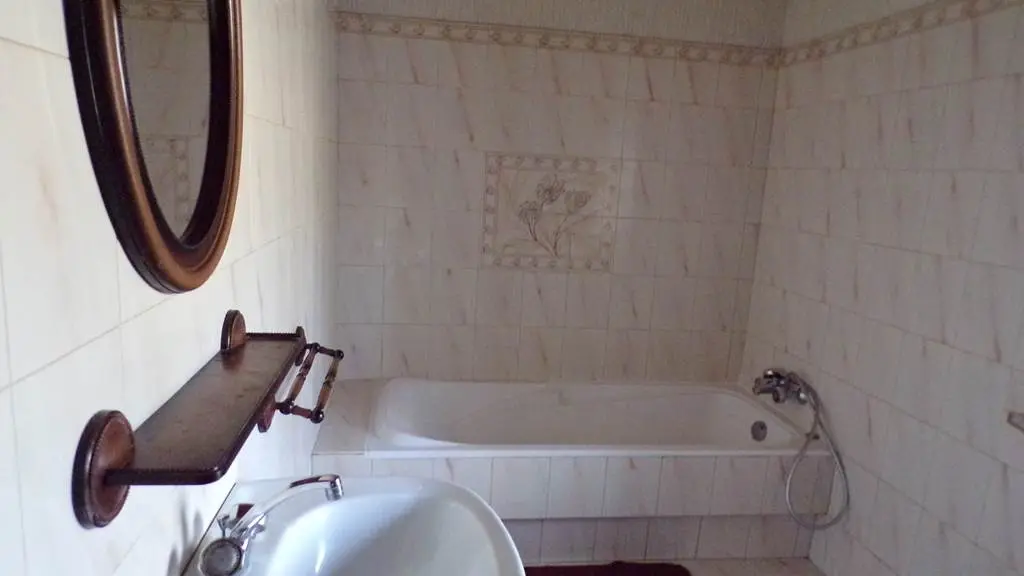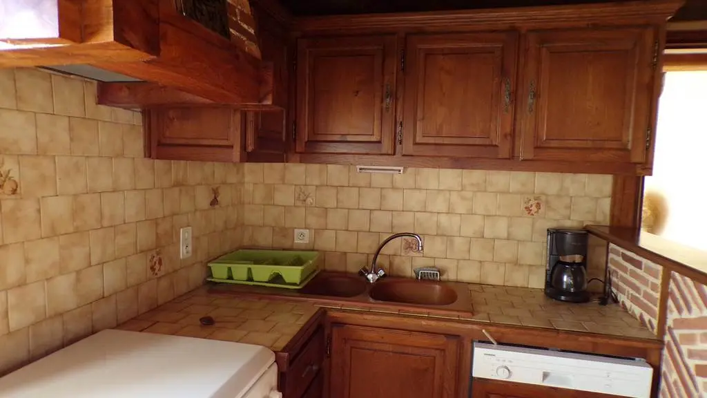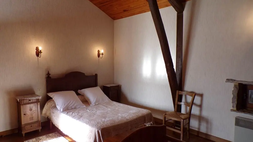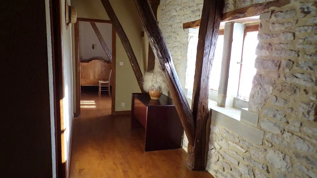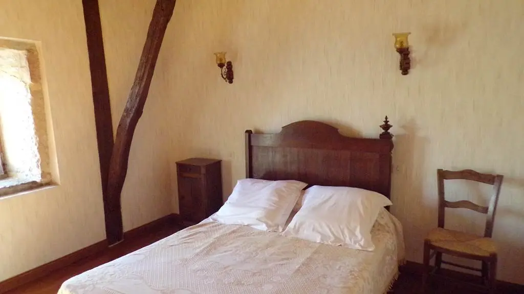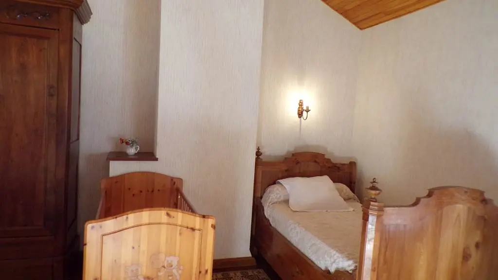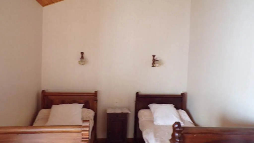 A l'étage : 1 chambre ( 1 lit 140 + 1 lit 110 ), 1 chambre (1 lit 140 ), 1 chambre (2lits 90), salle de bain, wc.