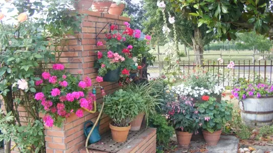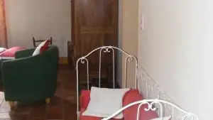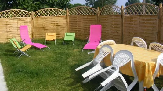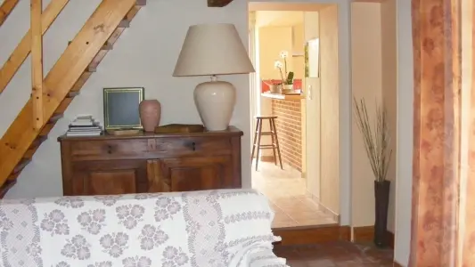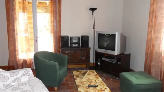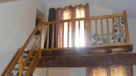 Il comprend : 1 cuisine équipée, un séjour, un salon avec mezzanine, 1 bureau - bibliothèque, (clic-clac), 3 chambres (2 lits 140, 2 lits 90) dont une avec salle d'eau et WC privatifs, 2 WC indépendants, 1 salle de bains (baignoire + douche). Buanderie, 1 terrasse, 1 véranda. Barbecue, salon de jardin, portique enfants, grand jardin arboré en partie commun avec les propriétaires. Terrain clos.