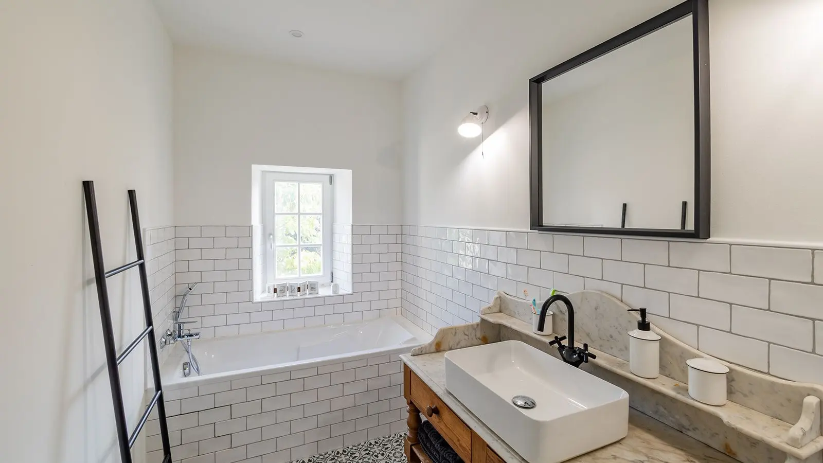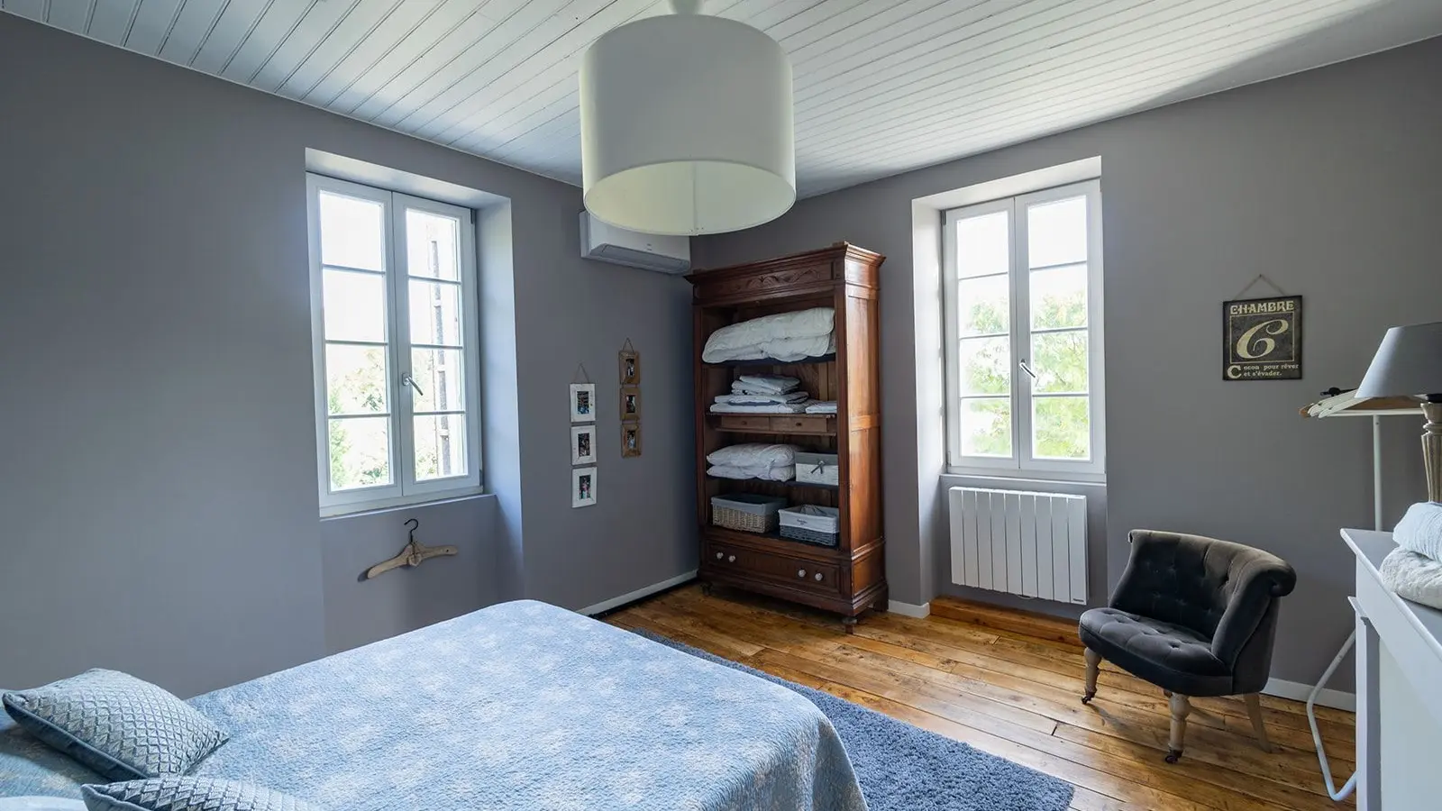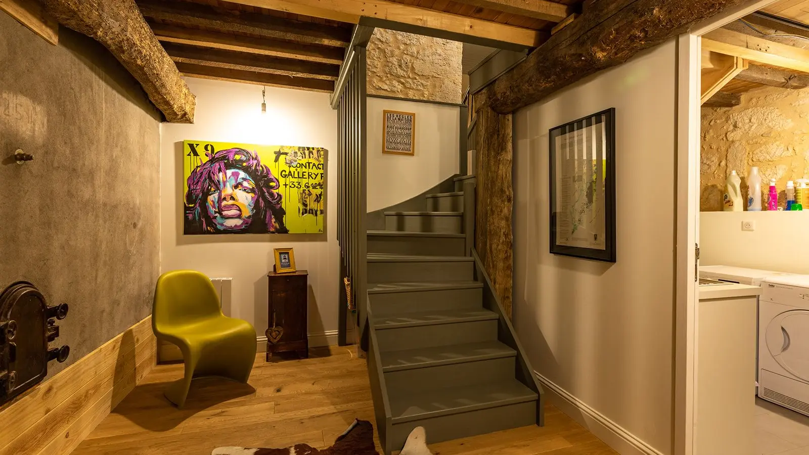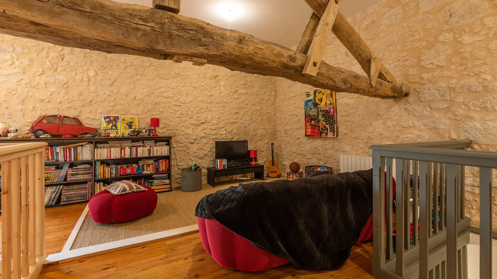 La grange et l'ancienne ferme ne font plus qu'un et compose la générosité d'espace de ce logement : 10 marches accèdent au hall d'entrée totalement vitré qui dessert sur la partie gauche : un salon (3 grands canapés, table basse, bureau, cheminée), une salle à manger (table pour 14 personnes) donnant sur une cuisine après 3 marches (parfaitement équipée (2 plaques de 4 feux induction, réfrigérateur US avec machine à glaçons, partie congélateur, lave-vaisselle, four, micro ondes ). Sur la partie droite du hall, un espace jeu et un deuxième salon (canapés), 1 wc indépendants (lave mains), 1 buanderie (lave-linge sèche-linge), 1 chambre (1lit 140, salle d'eau avec wc privés). Accès par escalier 4 marches à la deuxième partie de la maison qui comprend 1 chambre parentale (1 lit 160, 1 salle de bains (douche et baignoire) et dressing, 1 chambre (1 lit 140 1 salle d'eau et wc privés). A l'étage 4 chambres qui se partagent 1 salle de bains (douche et baignoire et wc), dont 3 chambres avec 1 lit 140 et 1 chambre avec 1 lit 160. Wifi dans toute la maison.