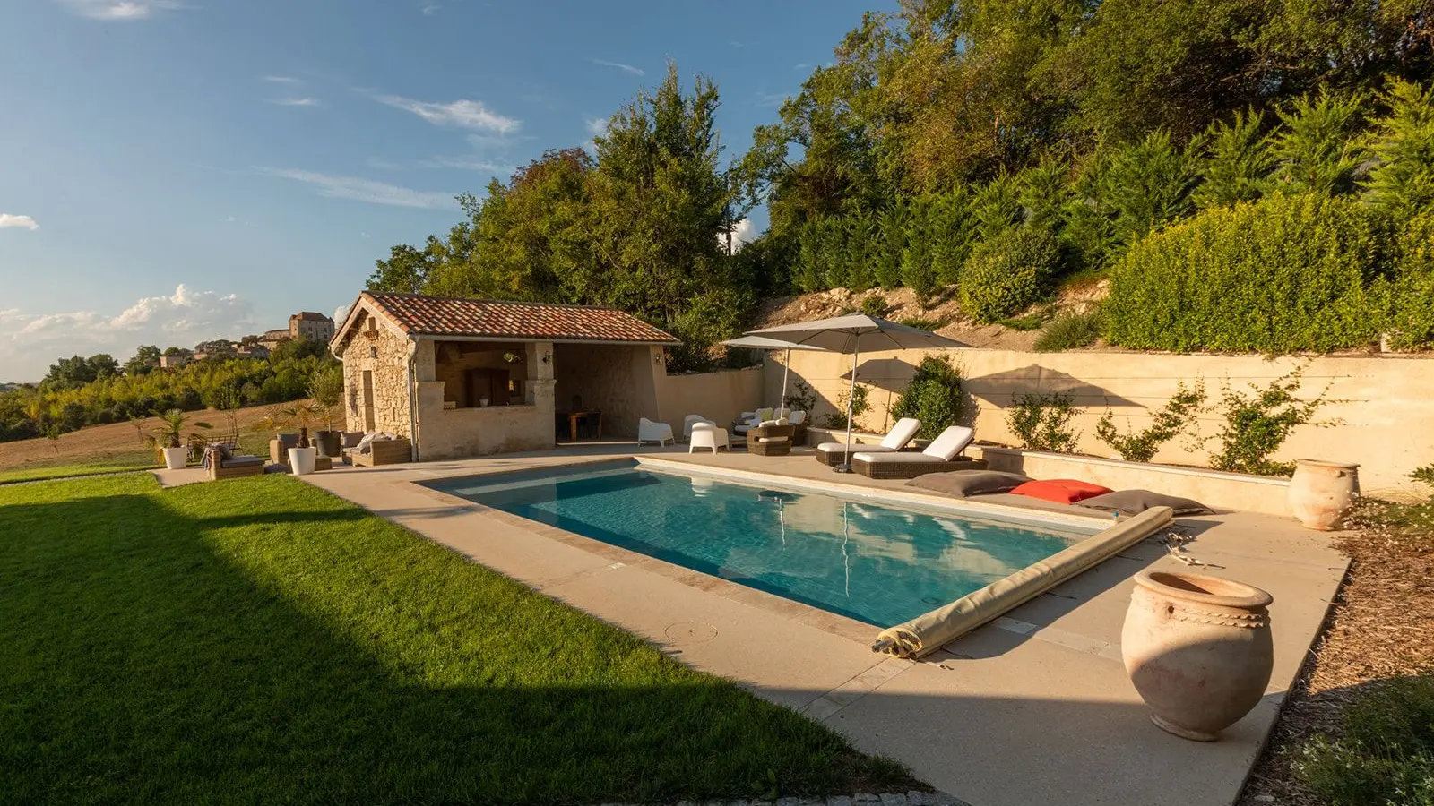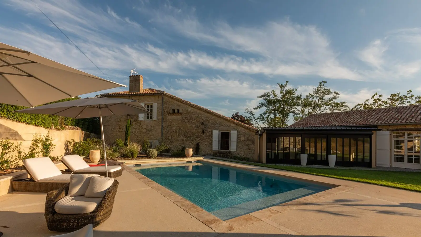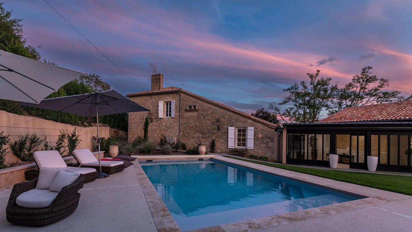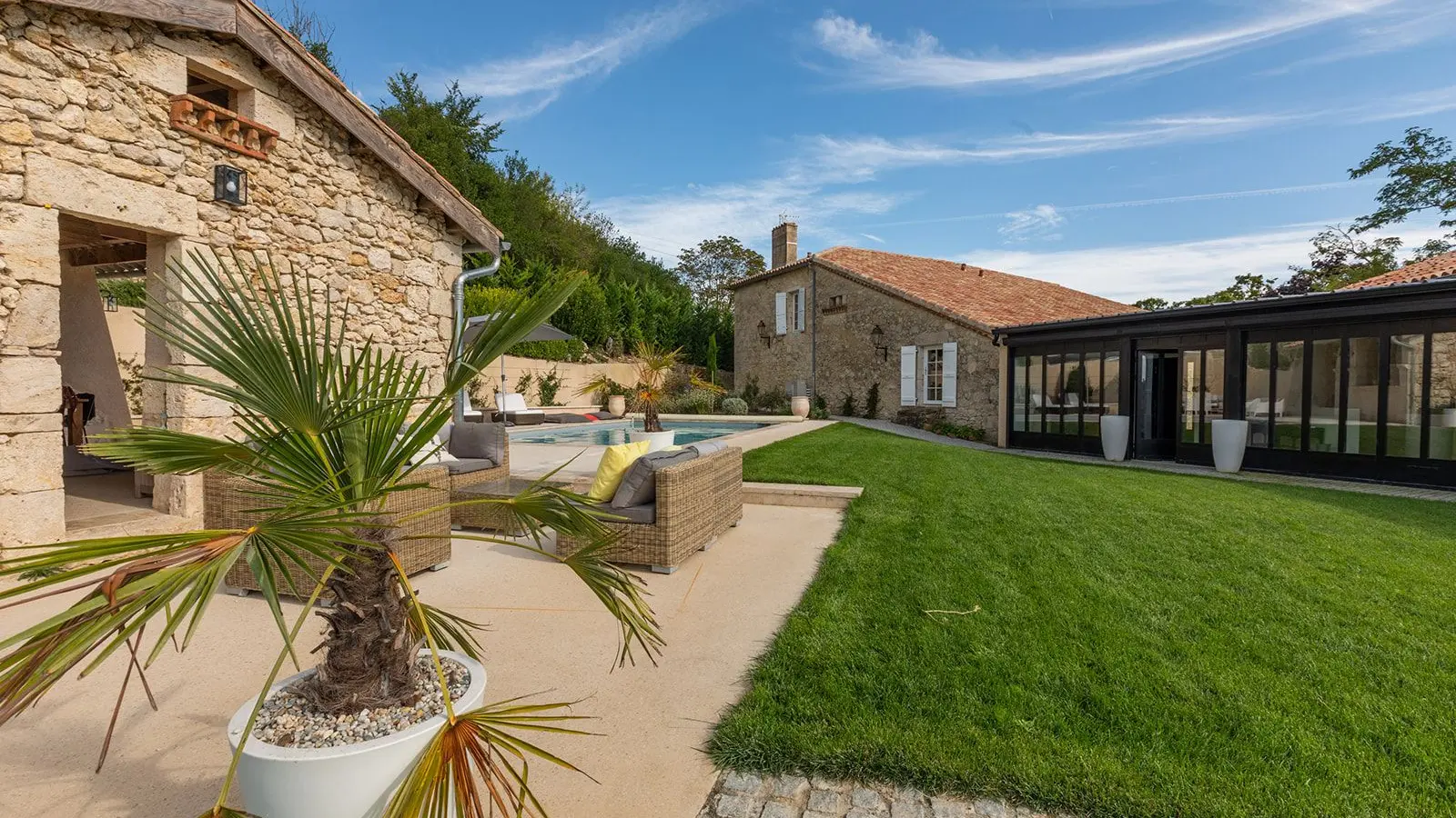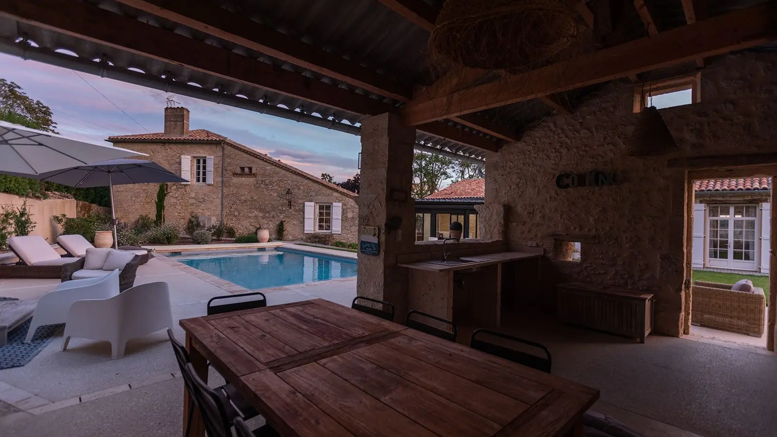 Draps linge de lit et de toilette fournis et ménage final compris dans le prix. Espace pool house près de la piscine avec cuisine d'été (plancha, évier, réfrigérateur mobilier de jardin, table et chaises, canapés fauteuils sur terrasse et plage de la piscine. Piscine privée (9x5 et profondeur maximum 165), table de ping-pong, baby foot, balançoire enfants extérieure.... Tout autour pelouse, parking de stationnement, parc non clôturé ouvert sur les coteaux.