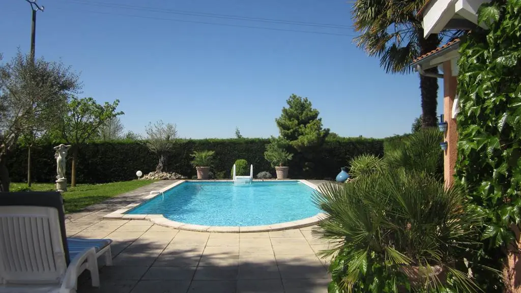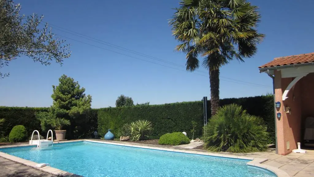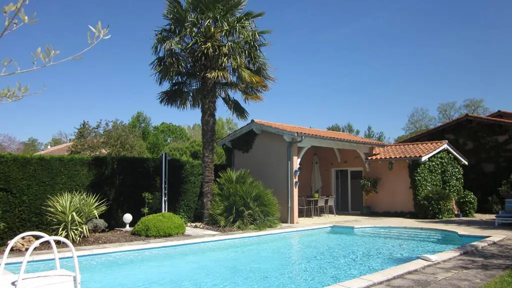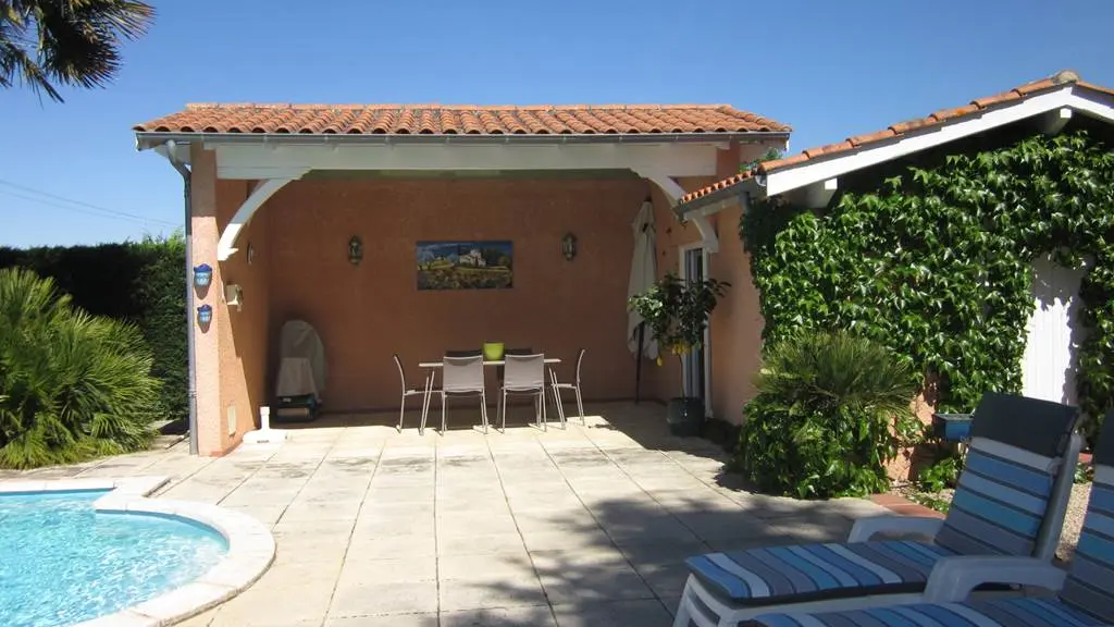 En commun : le terrain clos de 2000 m2, la piscine (très peu utilisée par les propriétaires), le pool-house, terrasse couverte avec baby-foot.