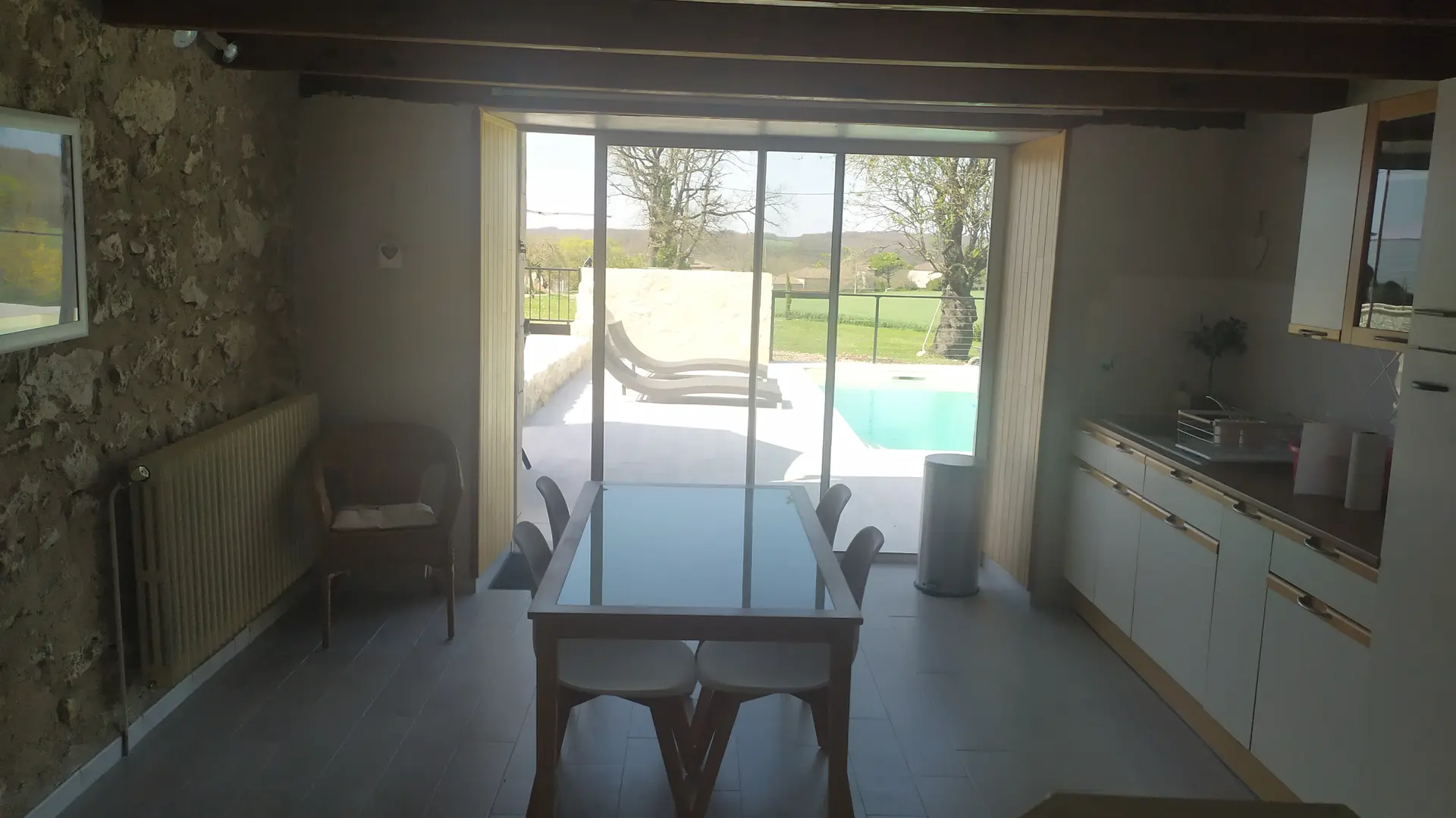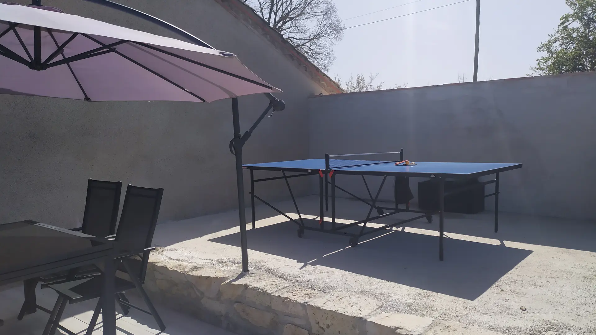 A l'extérieur terrasse, barbecue, salon de jardin et grand espace de pelouse, piscine extérieure privée et table de ping pong.