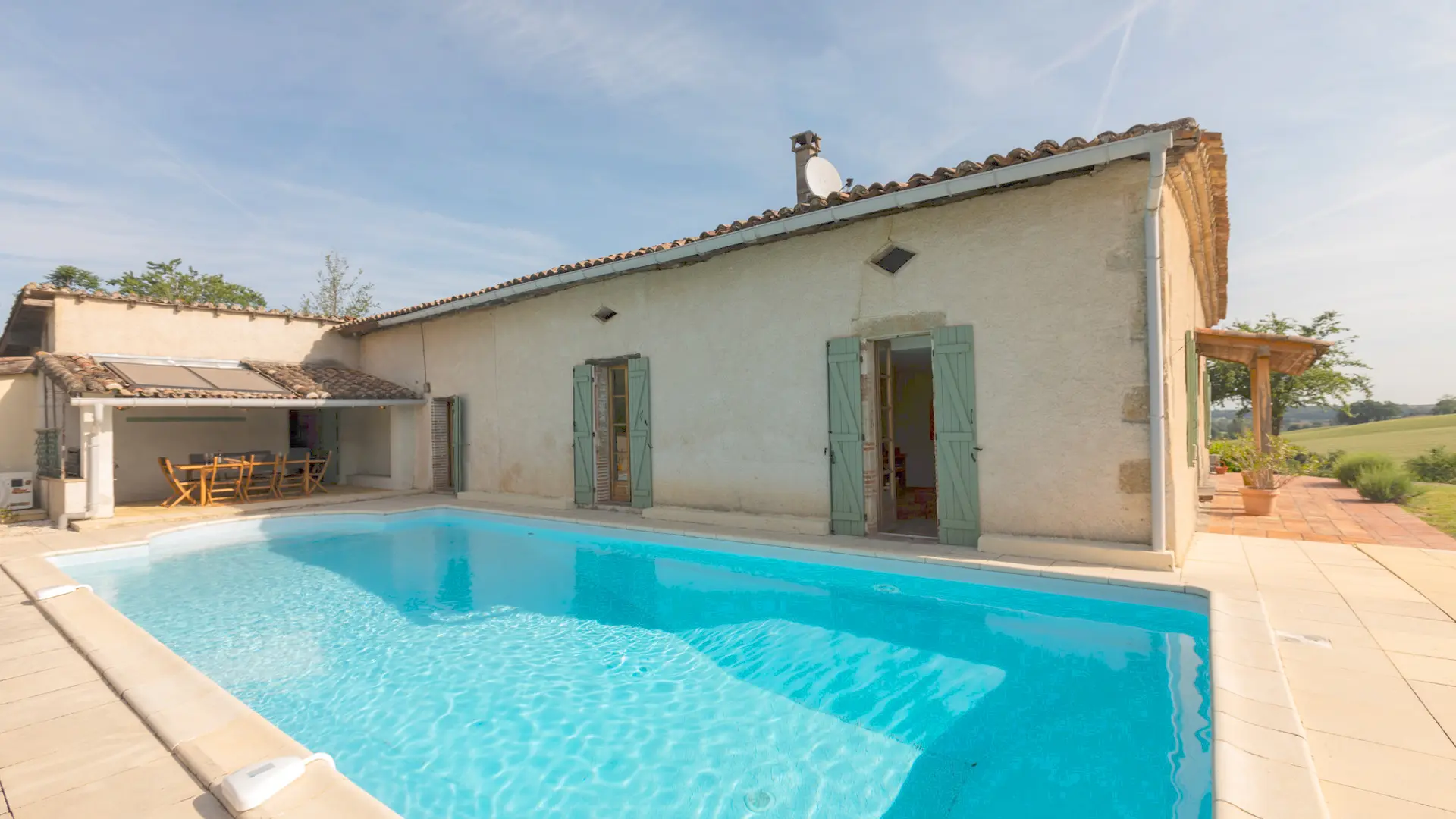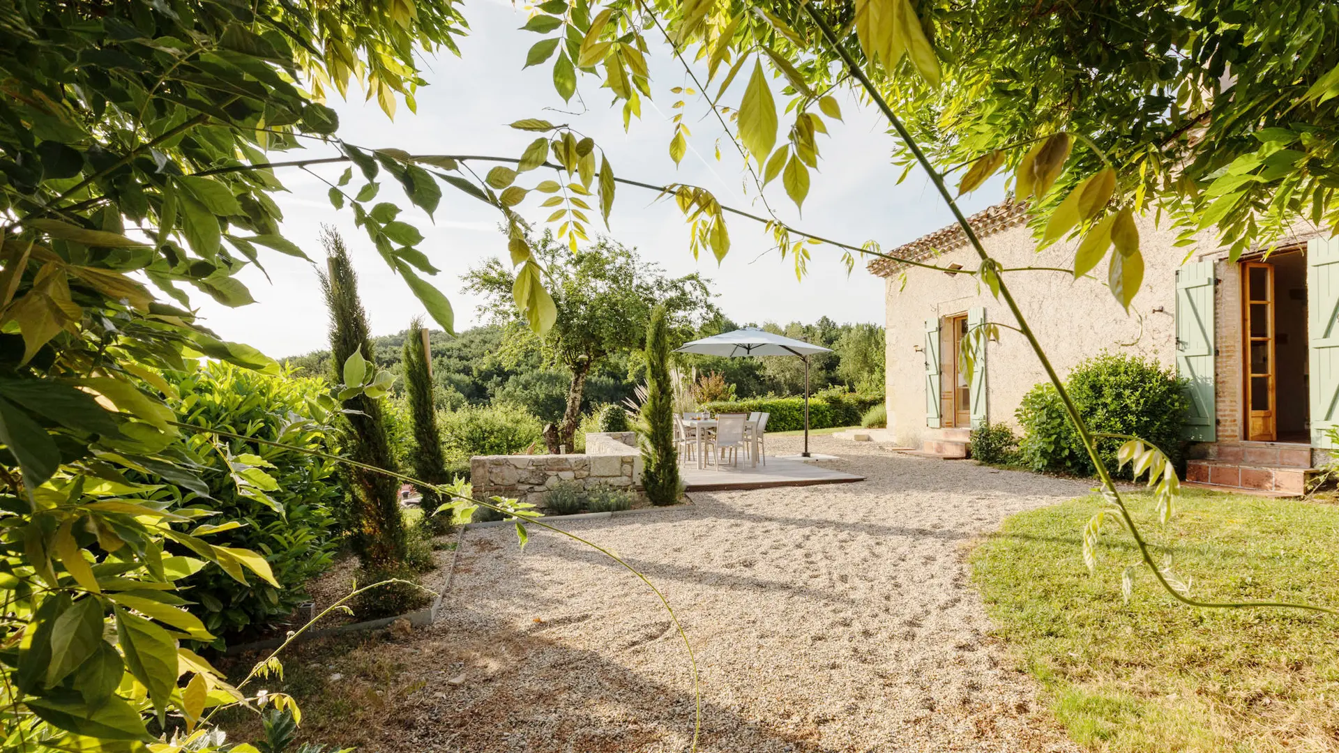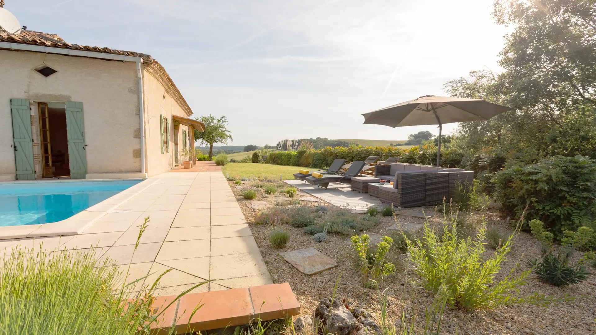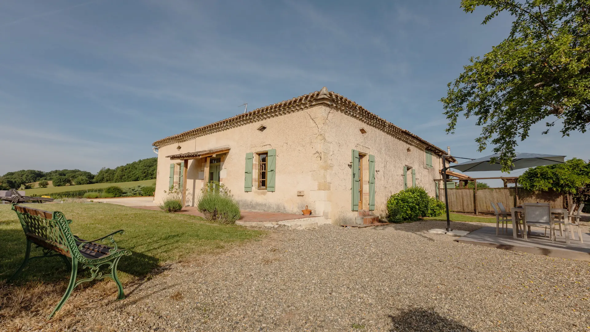 À la frontière du Gers et du Tarn et Garonne, la Maison Kalia vous attend dans son parc privé de 2000m² à flanc de collines pour un séjour reposant, au calme de la campagne du Sud-Ouest.