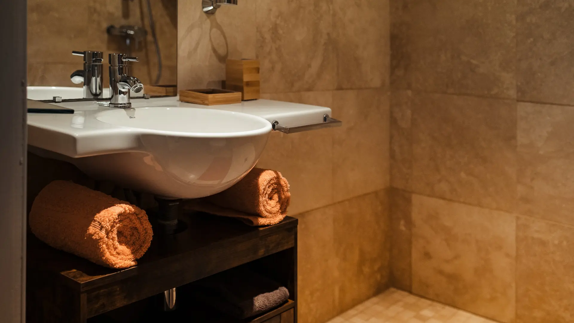 -Chambre double rdch (21m² – rdch) : 2 pers. Lit double king size 180. Salle de bain indépendante (douche et wcs)