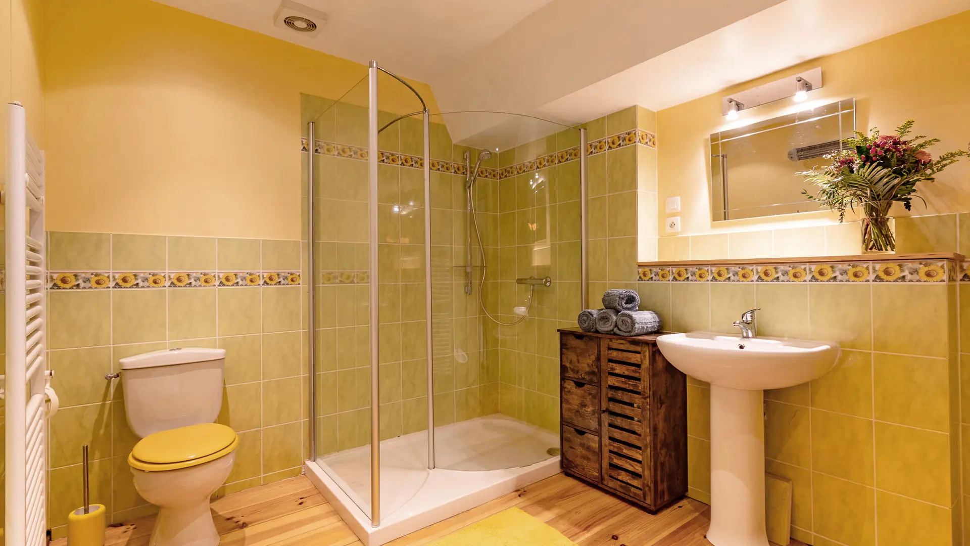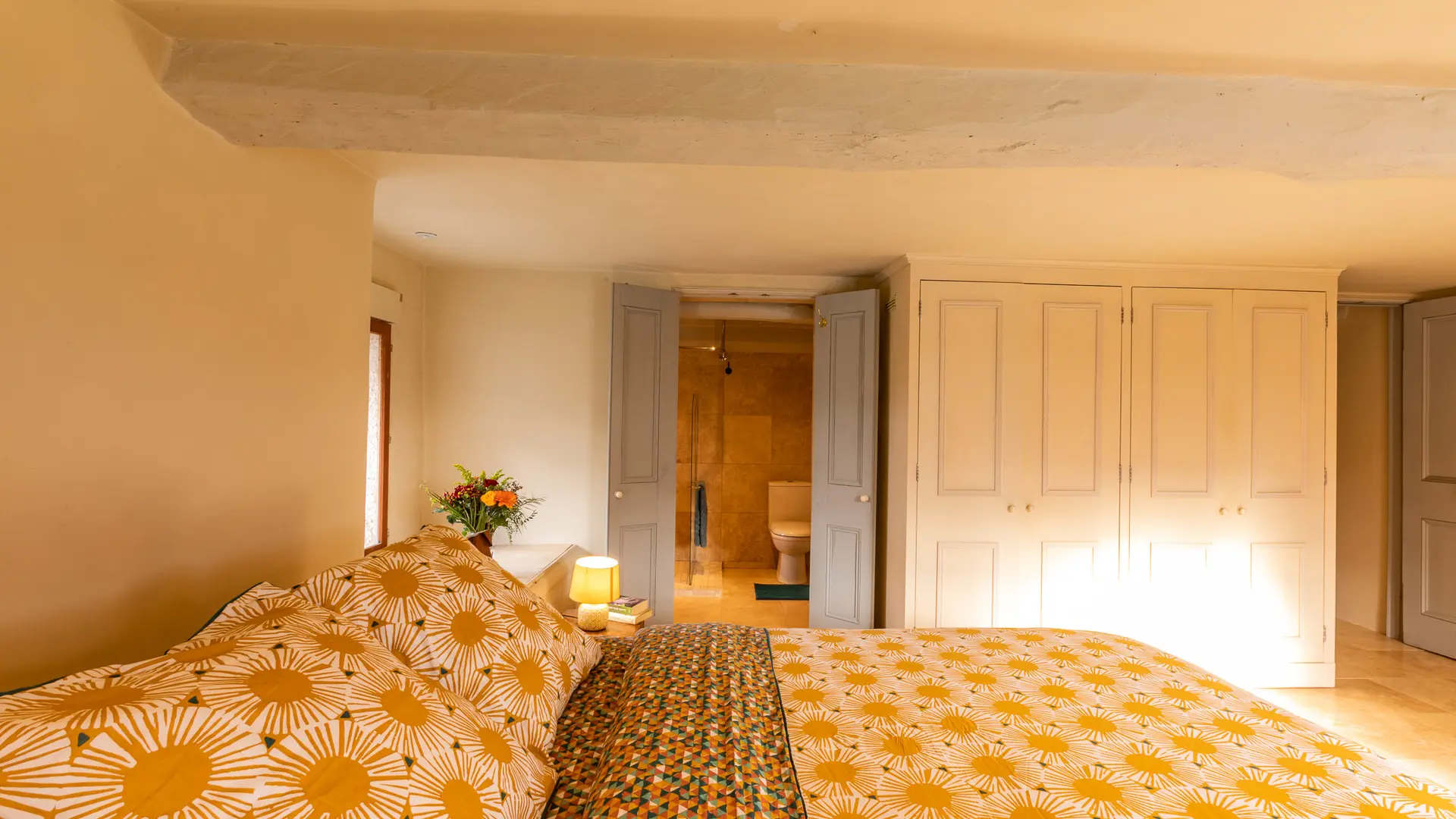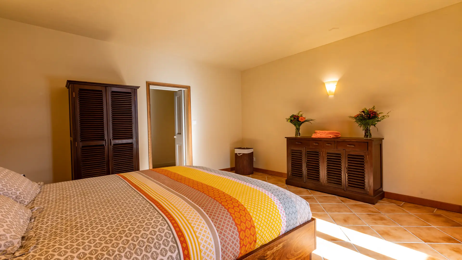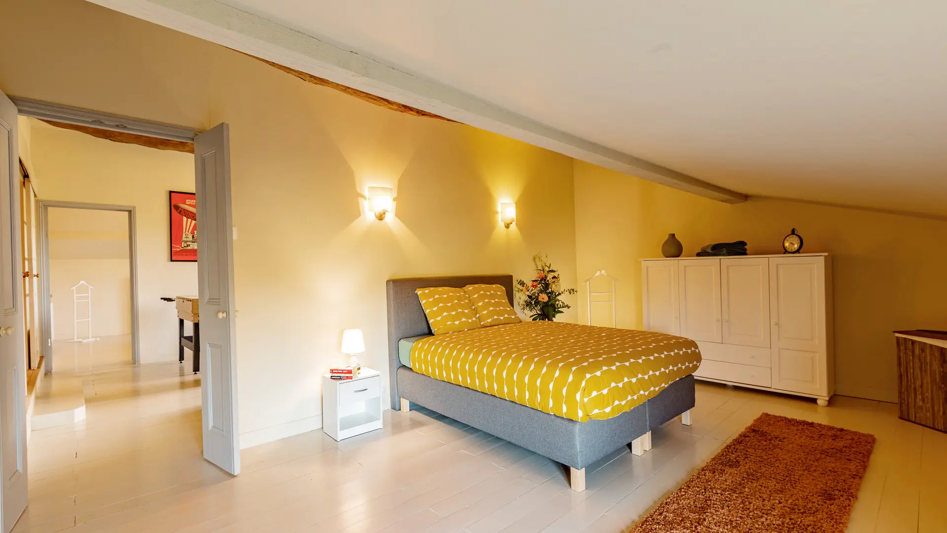 -Chambre double 4 (23 m² – étage) : 2 pers. Lit double queen size 160. Salle de bain partagée avec autre chambre double de l’étage (douche, baignoire et wcs)