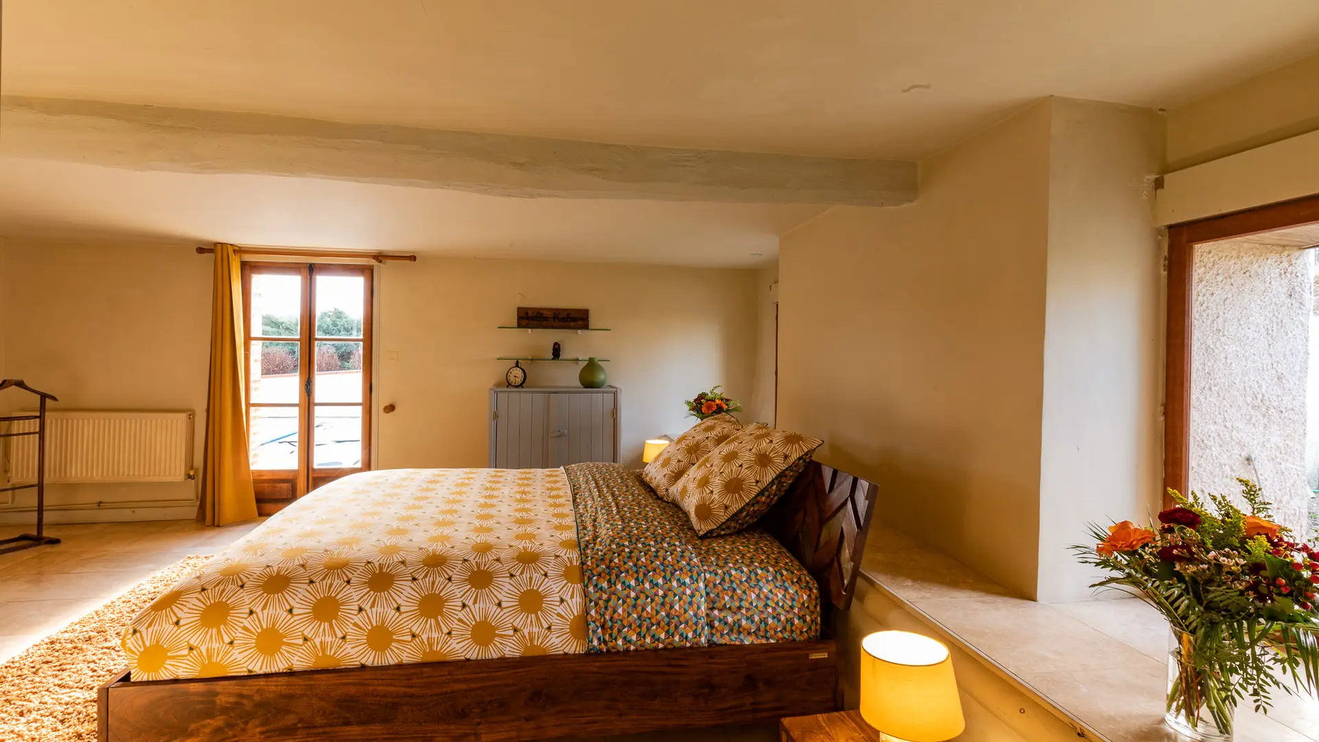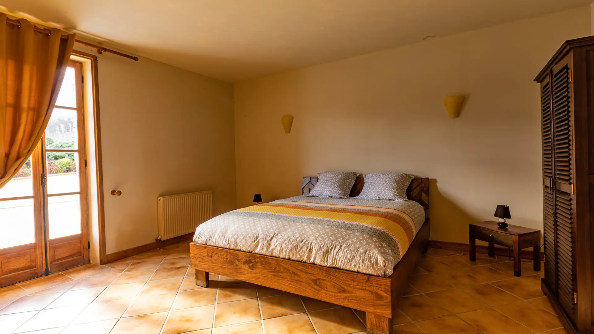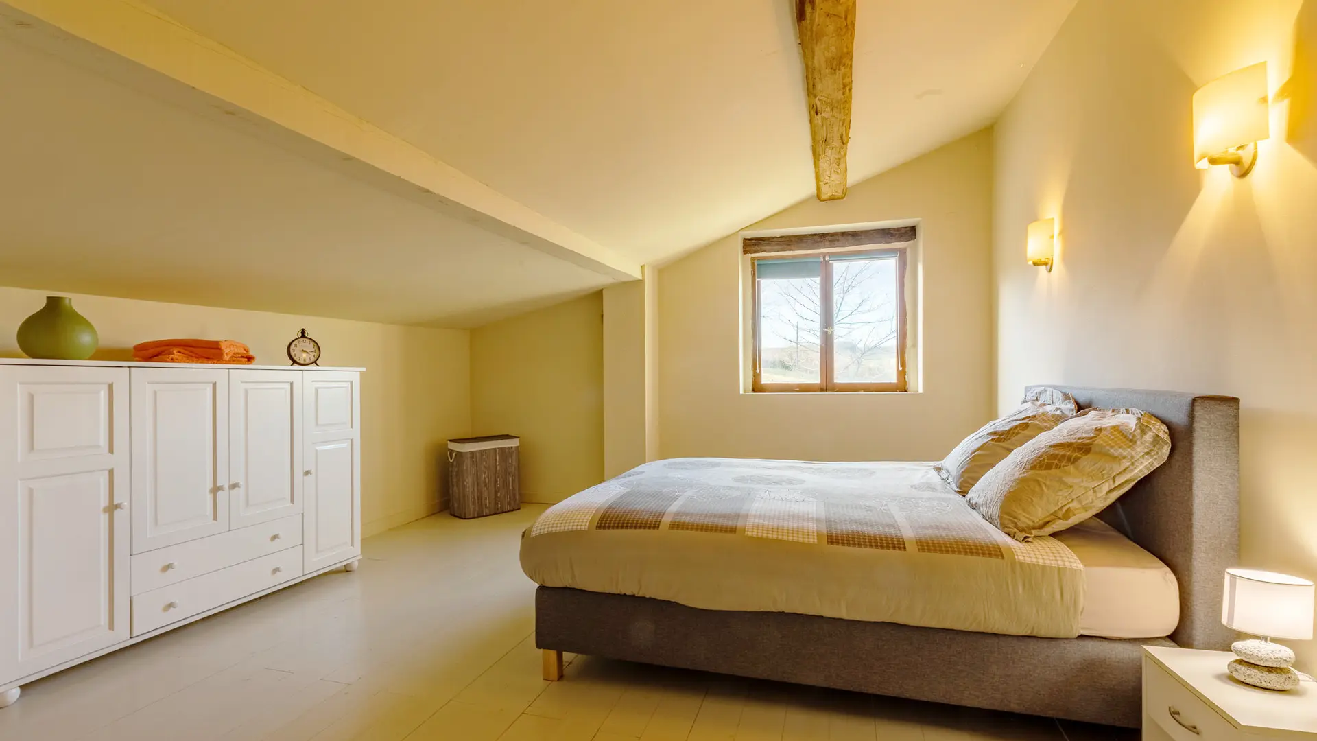 -Chambre double 3 (23m² – étage) : 2 pers. Lit double queen size 160. Salle de bain partagée avec autre chambre double de l’étage (douche, baignoire et wcs)