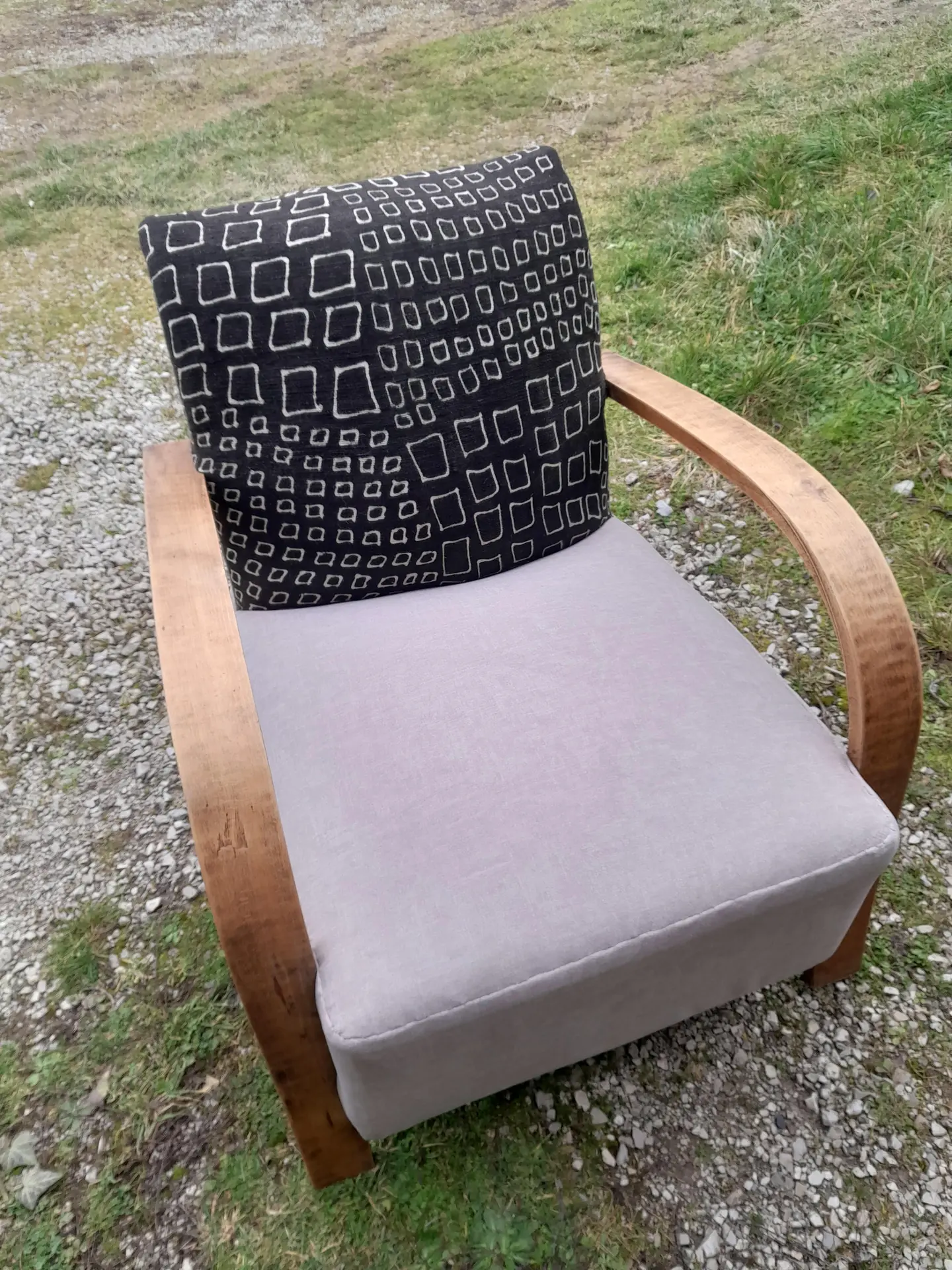 Je restaure des chaises et fauteuils anciens en pièces de décoration uniques et personnalisées. J'affectionne particulièrement le mobilier des années 50-70 pour son design et son confort. Les fauteuils vendus sont réparés et décapés avant d'être regarnis pour leur redonner tout le confort souhaité. Je réalise également à la demande des clients des réfections de fauteuils de tous styles ou seulement le changement de tissus qu'ils peuvent choisir grâce à différents catalogues d'éditeurs de tissus d'ameublement que je propose dans mon atelier.