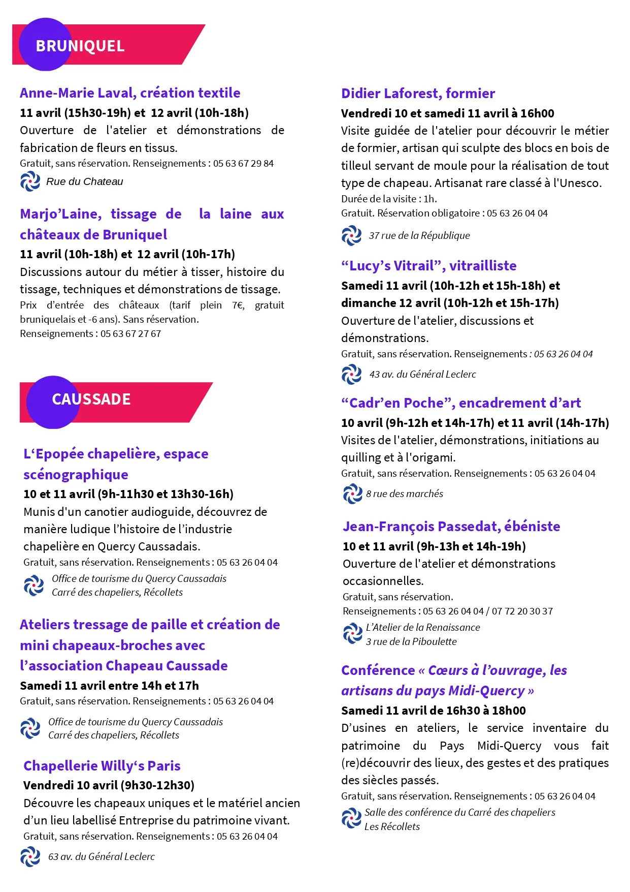 Organisé par L'office de tourisme Causses et Gorges de l'Aveyron, le PETR du Pays Midi-Quercy et la Chambre des métiers et de l'artisanat.