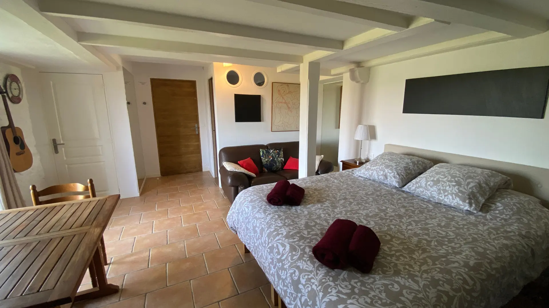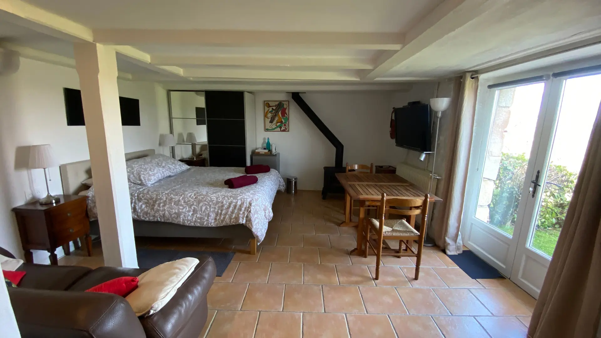 Lit double, bureau, canapé sur 25 m², salle de bain séparée privée