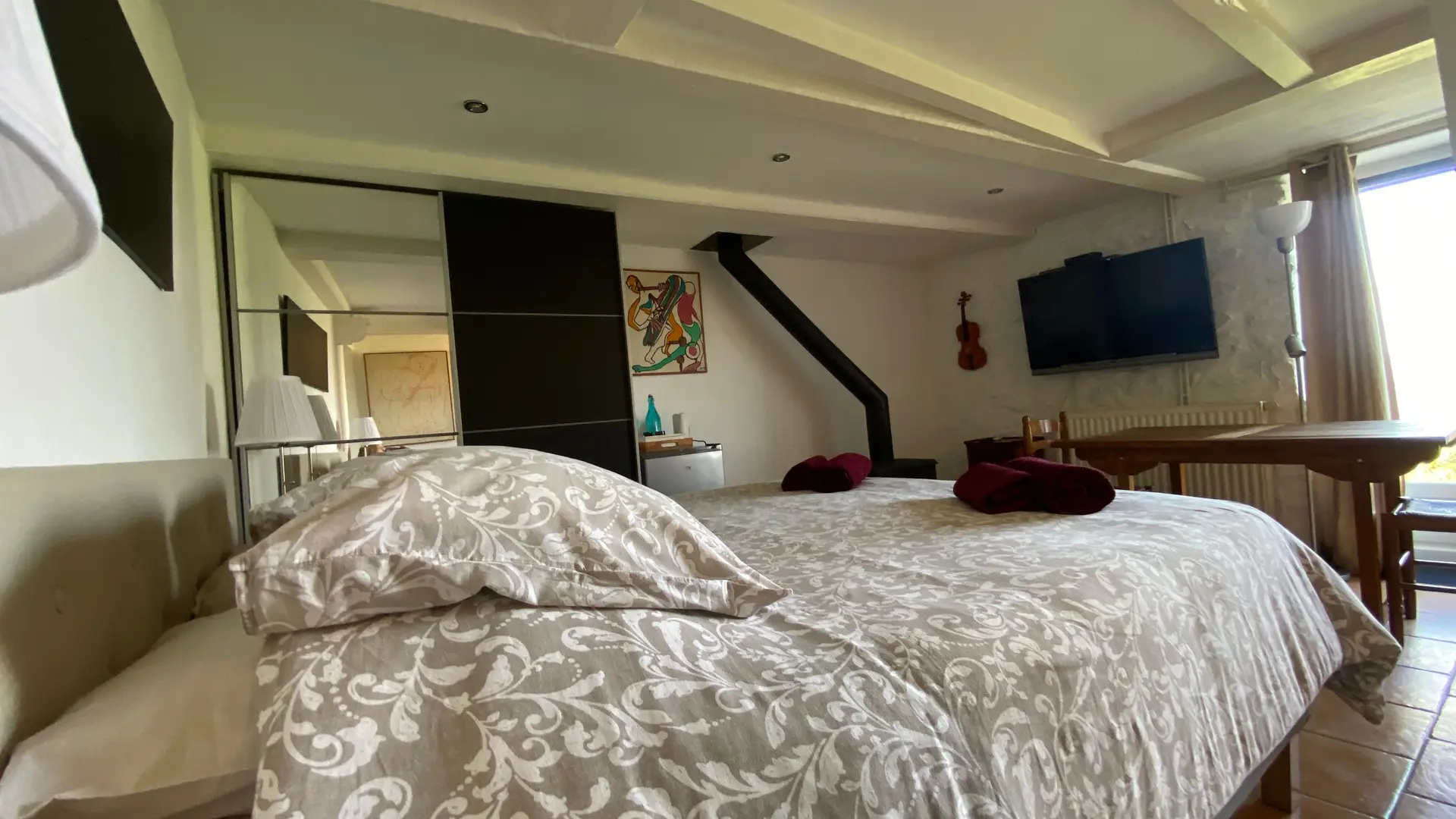 Chambre entièrement rénovée à neuf en 2017, bien isolée, chauffage central, un vrai nid douillet! Vue exceptionnelle. Salon privé attenant soit 32 m² de tranquillité avec la chambre.