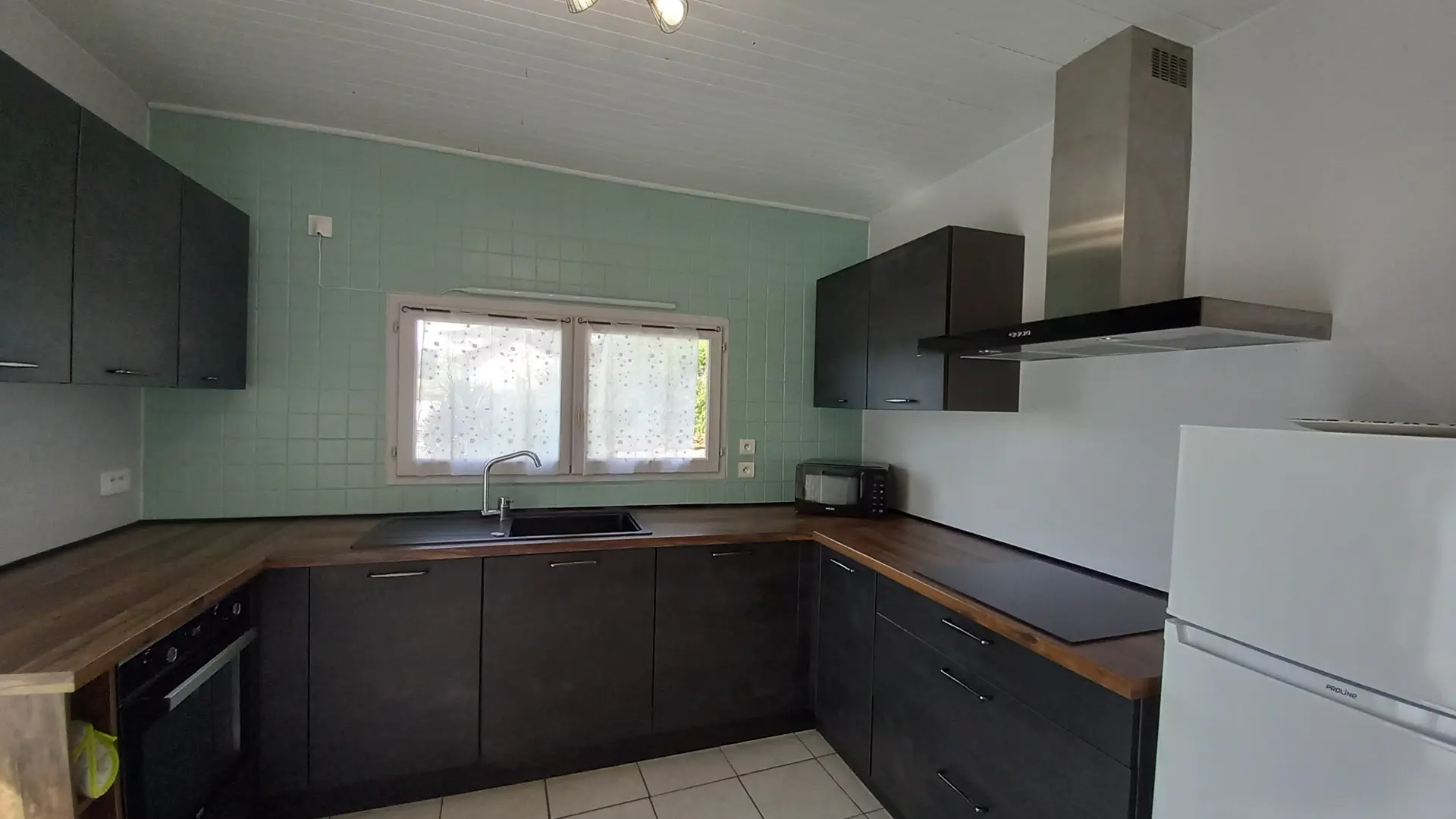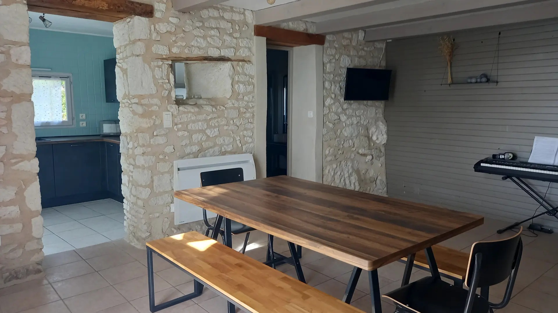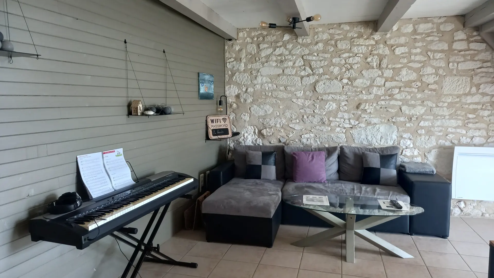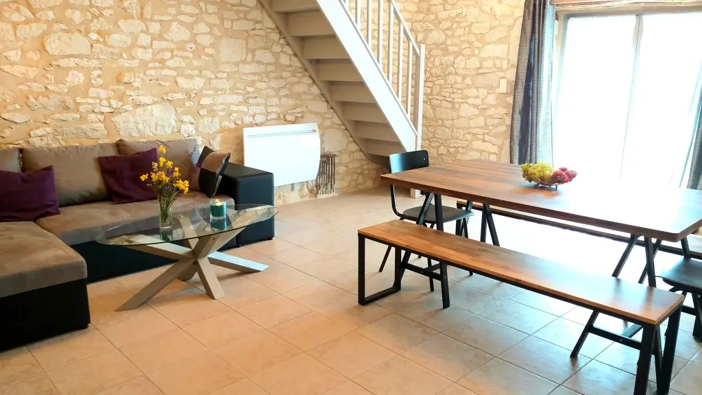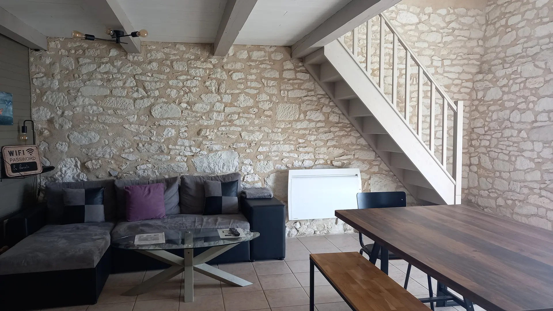 Le gîte est climatisé. Il est composé d'une chambre avec lit double, une chambre avec 3 lits simples (ou deux simples et un double), une pièce de vie avec un canapé