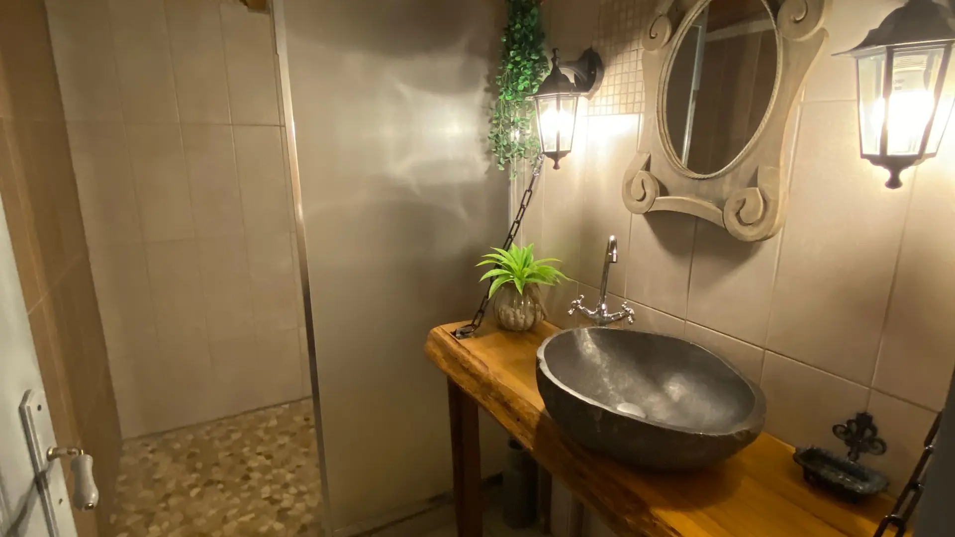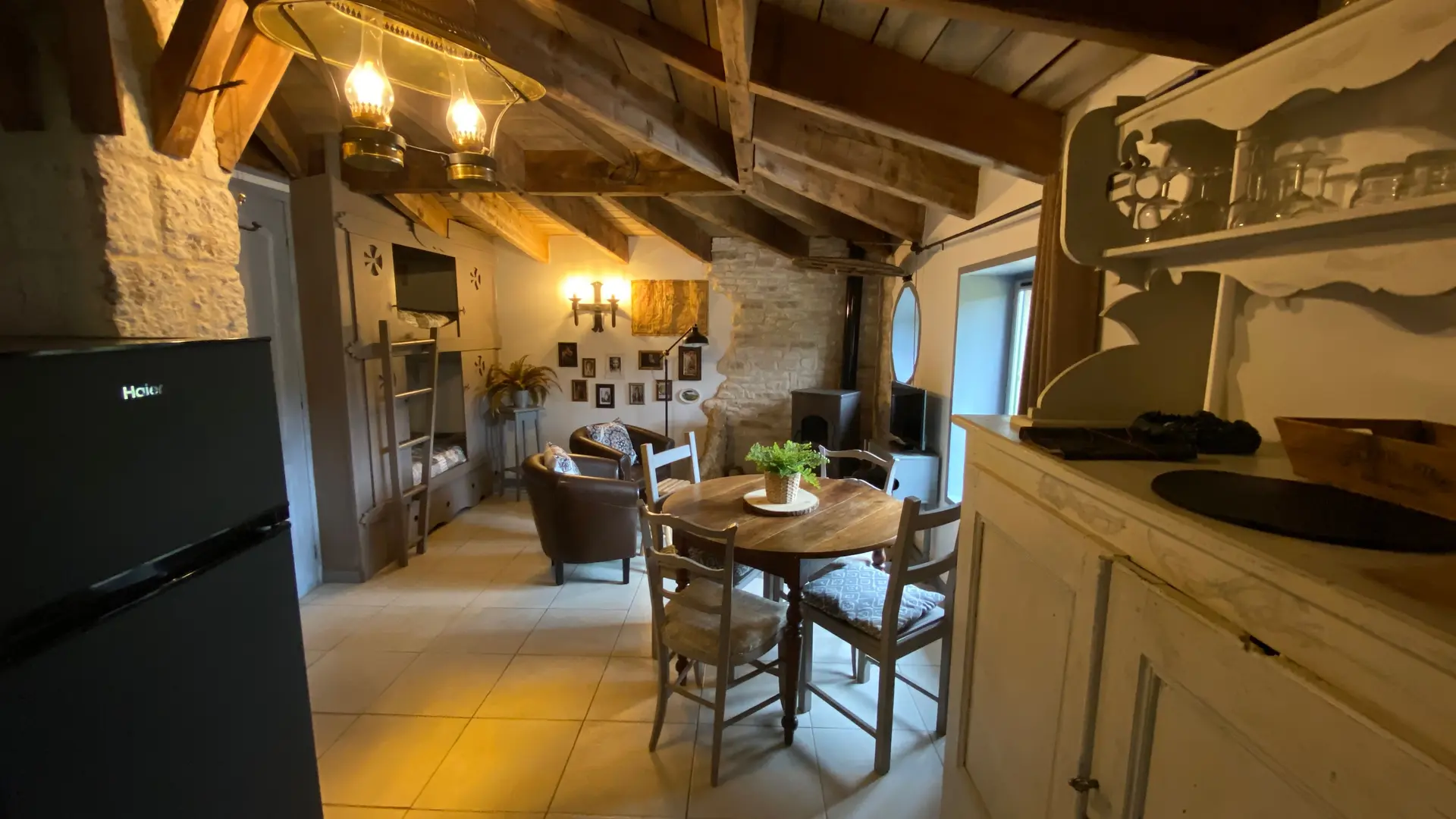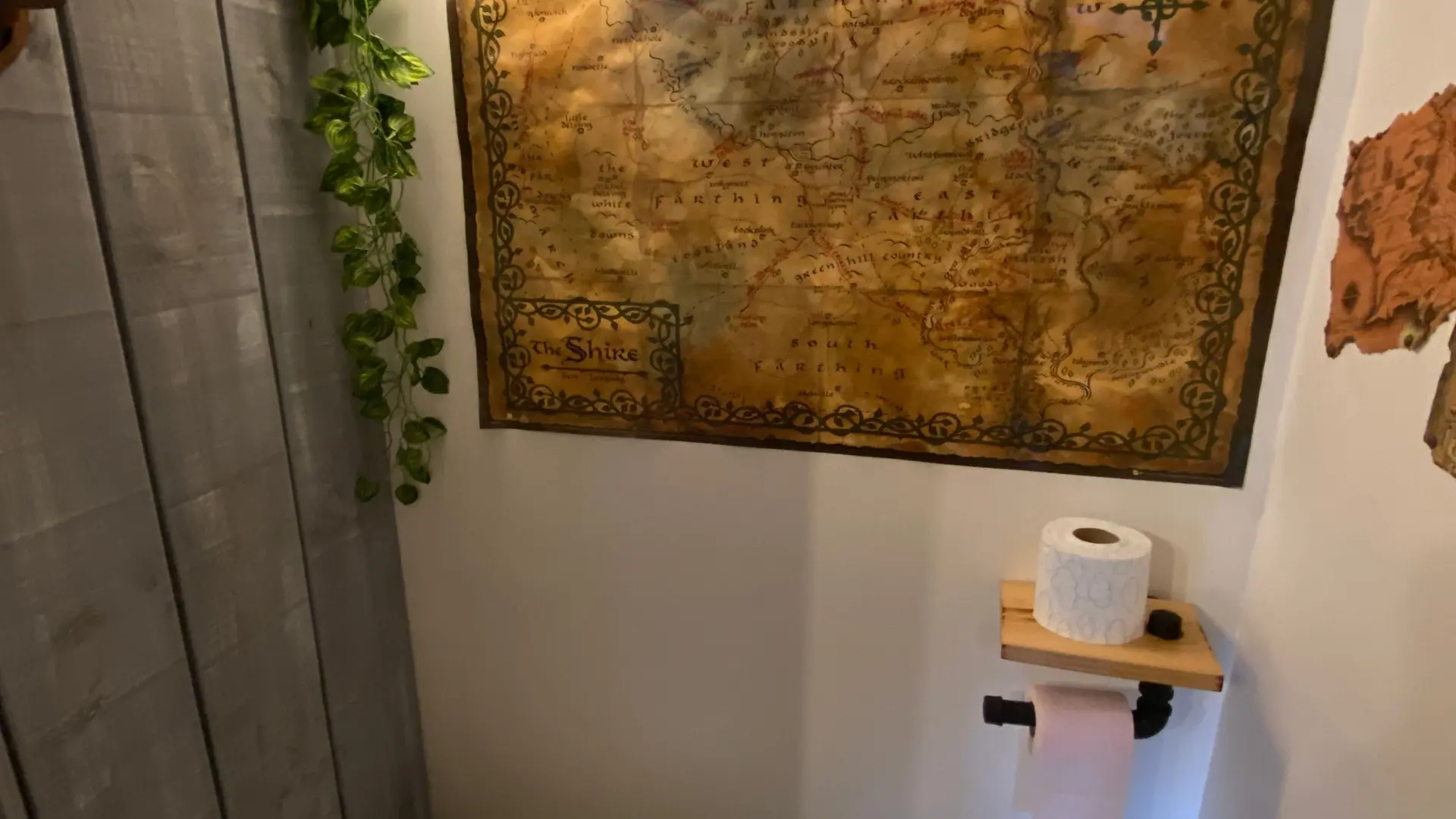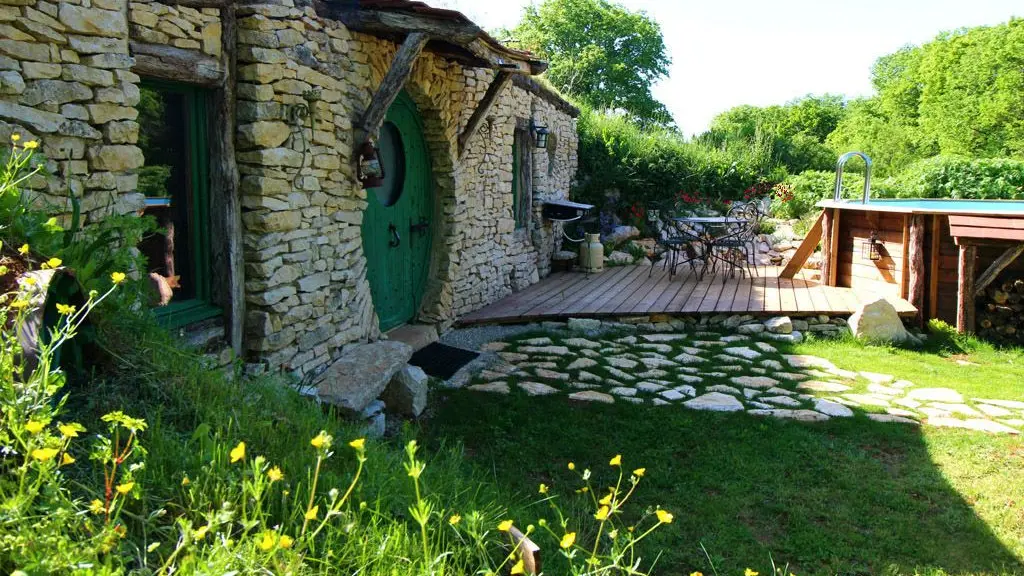 Ici tout indique une ambiance des plus originales : A l'extérieur,, toit végétalisé , maison adossée à un talus de terre et à l'intérieur, l'esprit " du Seigneur des Anneaux totalement réinventé !