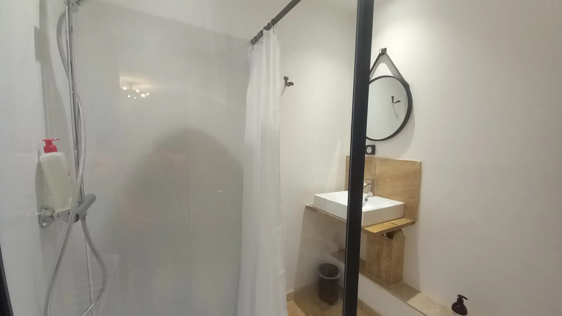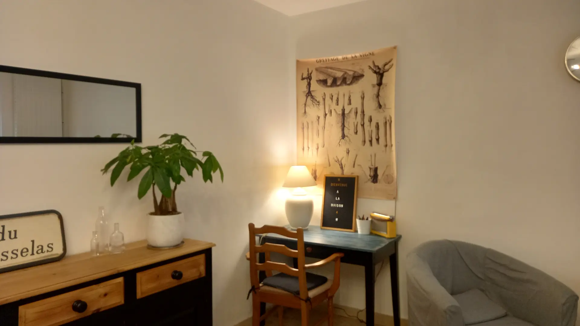 À l'extérieur, une cour intérieure entourée de murs élevés peut accueillir deux voitures de taille moyenne, abriter des vélos et offrir un espace extérieur convivial avec un salon de jardin pour huit personnes et un barbecue. Deux vélos sont également mis gracieusement à la disposition des hôtes. Profitez pleinement de votre séjour à "La Maison 4" où tranquillité, confort et convivialité se conjuguent harmonieusement.