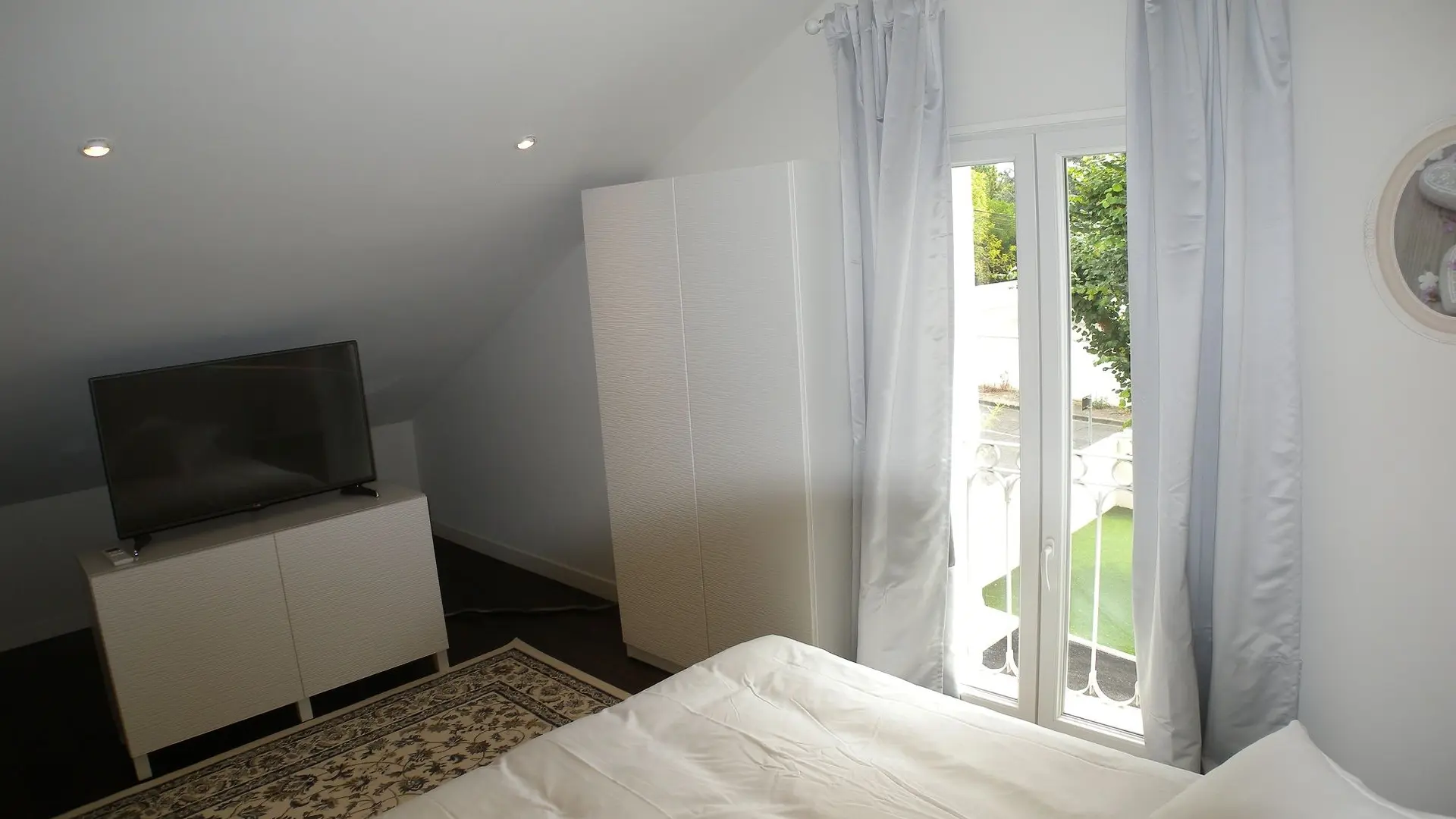 Au rez de chaussée : Une chambre avec lit de 160 cm, salle de bain, télévision.