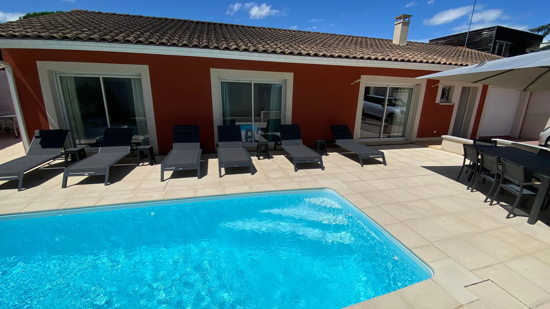 La maison rouge à Montauban est une maison neuve indépendante,avec sa piscine chauffée ,située dans un quartier calme, proche du centre ville,( 1km500 , 3mn en voiture ) de plein pied.