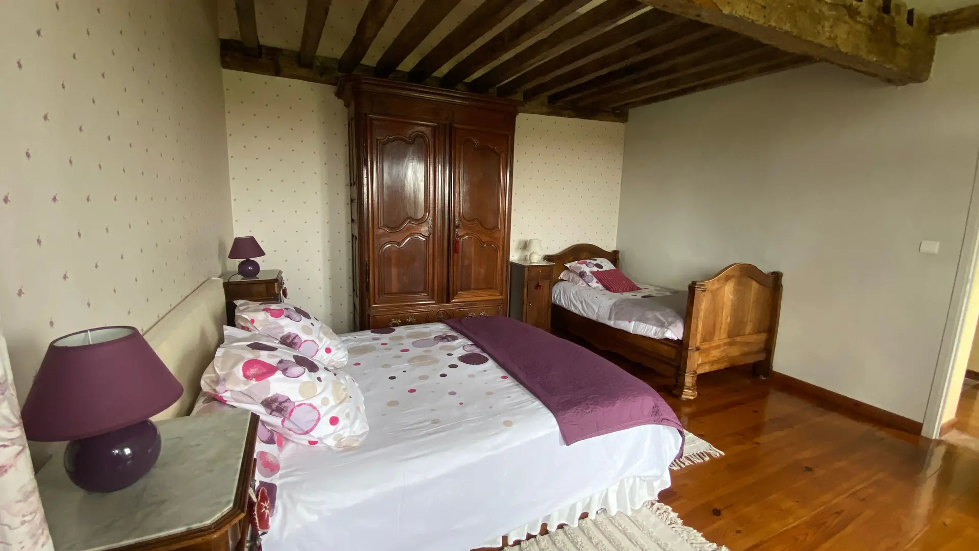 Gîte indép. Au rdc : séjour (canapés, TV), cuisine (éléments intégrés, MO, LV), cellier (SL LL Congélateur et réfrigérateur), réserve et wc indép avec lave-main. Au 1er : 2 ch (1 lits 140 dont 1 avec salle d'eau), 1 ch (2 lits 90), 1 ch (1 lit 160), sdb, WC. Salon bibliothèque (banquette, canapé). 2 terrasses au rdc et 1 à l'étage. Porche. Salon de jardin et barbecue. Abri véhicules. Chauffage électrique. Lit bébé, chaise haute, table à langer et transat sur demande. En option : ménage. Wifi dans le logement, bois fournit pour la cheminée gratuitement.