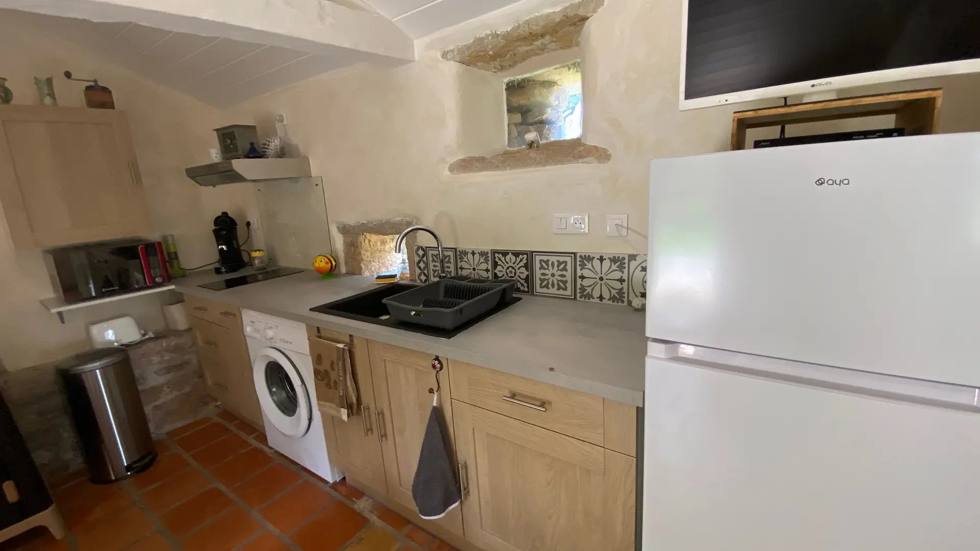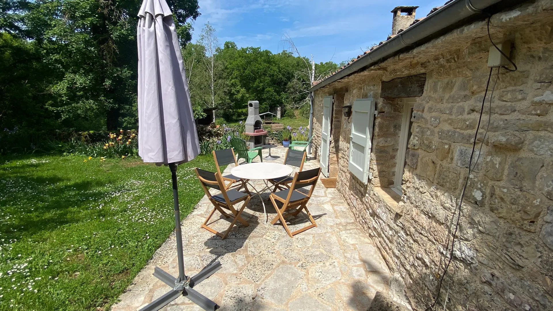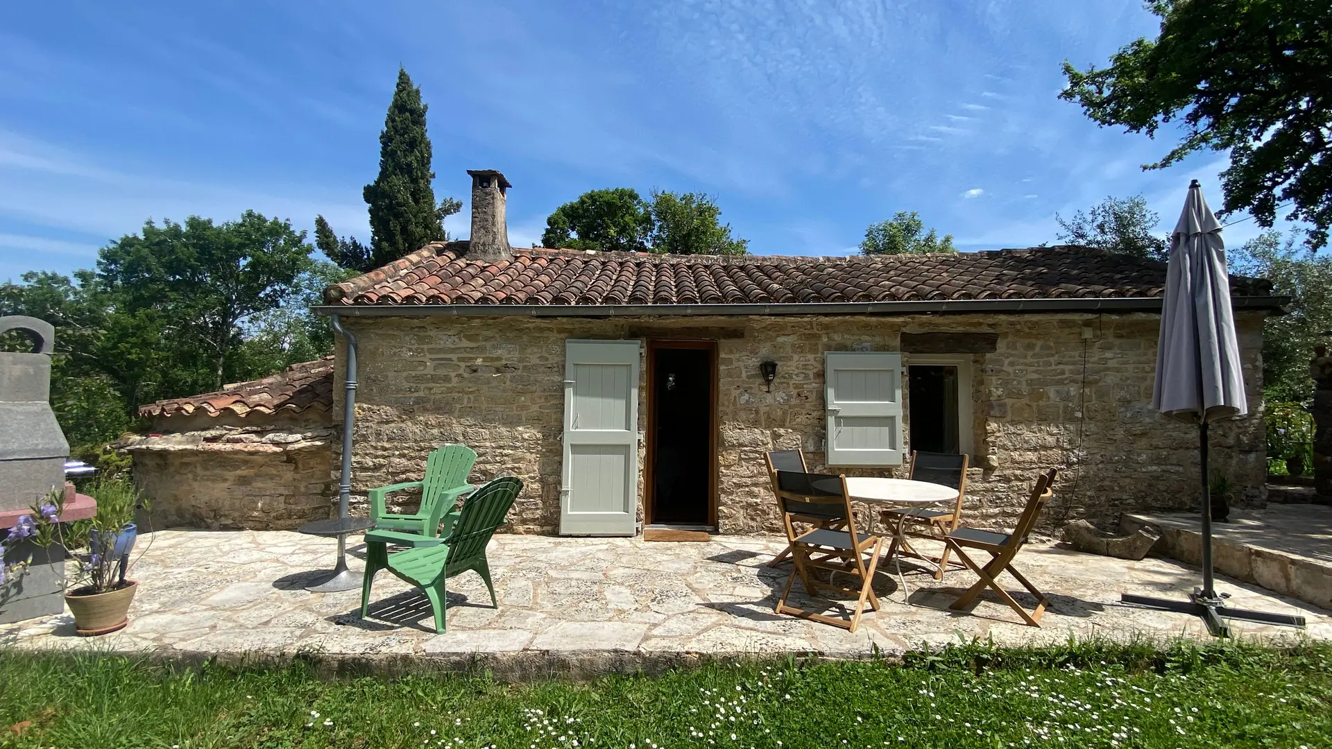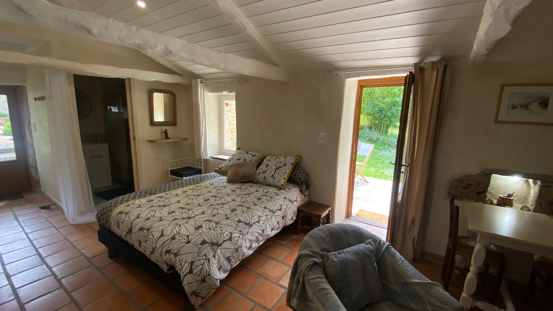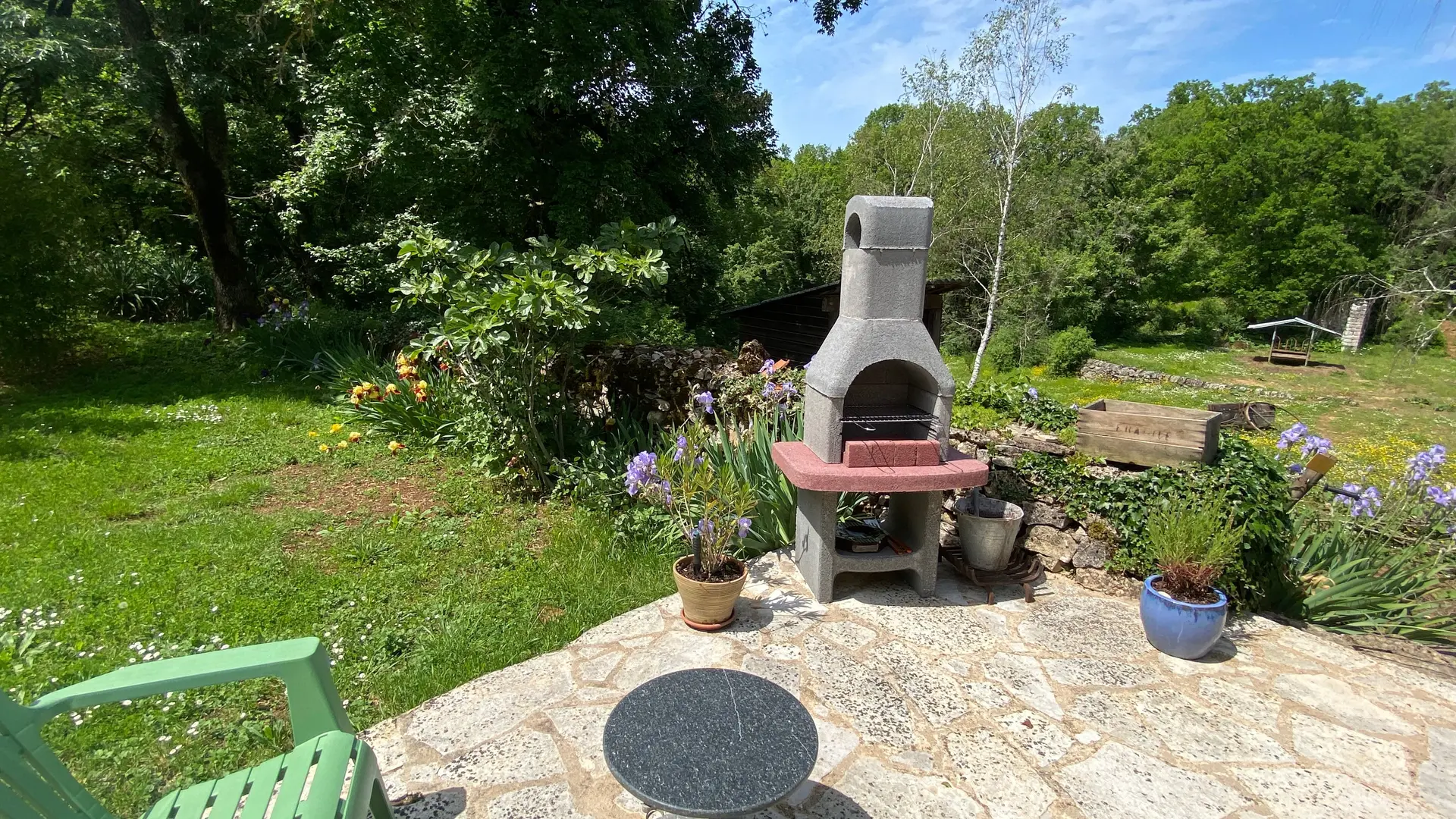 L'ancien four constitué d'une seule pièce vous propose : un espace cuisine (éléments intégrés avec plaque, four grill, lave-linge, réfrigérateur, congélateur, table, chaises) Un espace nuit ( 1 lit 140), et un coin salon devant le poêle à granulés (2 fauteuils), accès internet/wifi. Une salle d'eau fermée (douche, lavabo, sèche serviettes chauffant). Un wc indépendant. TV. Rangement dans penderie. Terrasse avec salon de jardin et salon de détente, barbecue fixe. Linge de lit et de toilette fournis compris dans le prix.
