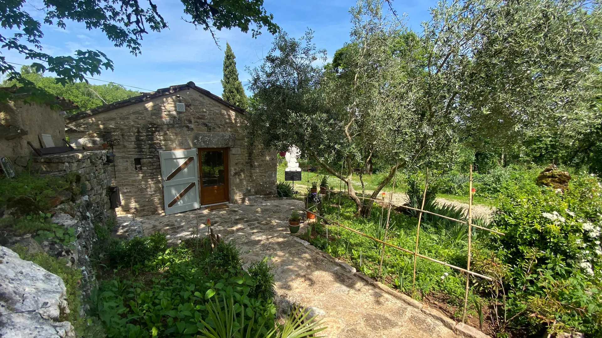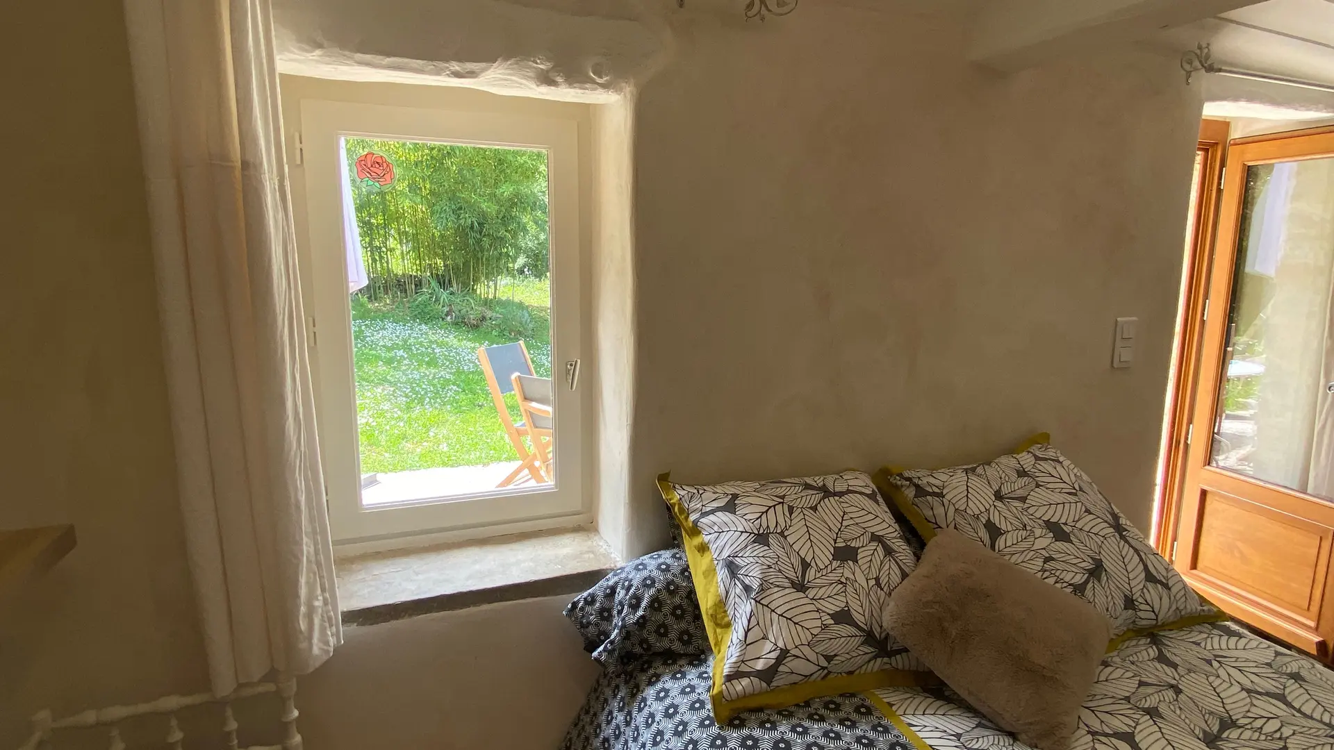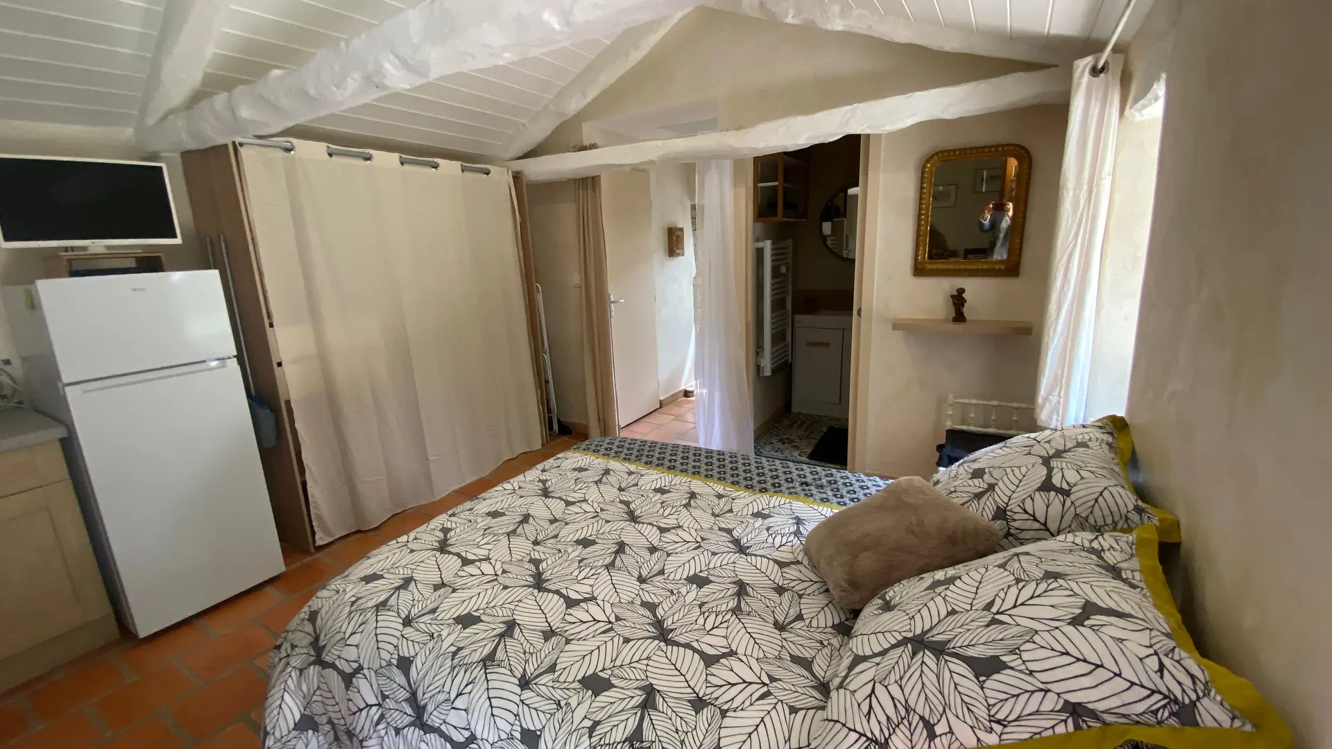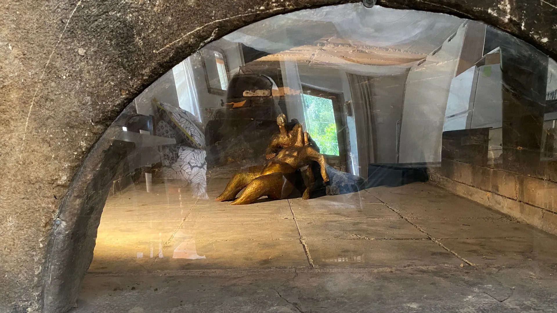L'ancien four constitué d'une seule pièce vous propose : un espace cuisine (éléments intégrés avec plaque, four grill, lave-linge, réfrigérateur, congélateur, table, chaises) Un espace nuit ( 1 lit 140), et un coin salon devant le poêle à granulés (2 fauteuils), accès internet/wifi. Une salle d'eau fermée (douche, lavabo, sèche serviettes chauffant). Un wc indépendant. TV. Rangement dans penderie. Terrasse avec salon de jardin et salon de détente, barbecue fixe. Linge de lit et de toilette fournis compris dans le prix.