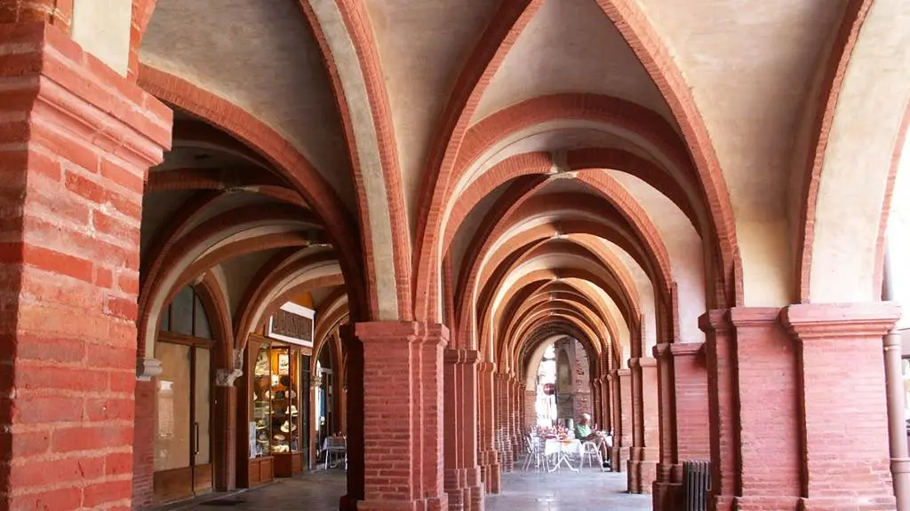 Ruinée par deux incendies en 1614 et 1649, la place a été entièrement reconstruite grâce à la générosité royale et la volonté des consuls. Ce chantier d’envergure est achevé au début du 18e siècle. L’alignement des façades scandées de pilastres monumentaux, l’emploi systématique de la brique et le voûtement des couverts sur croisées d’ogives traduisent la volonté d’unifier l’architecture, de faciliter la circulation de l’air et de rendre les maisons moins vulnérables au feu.
