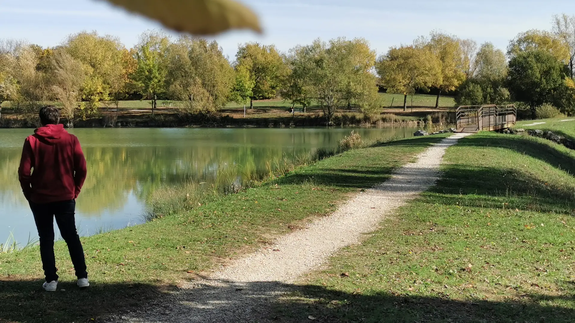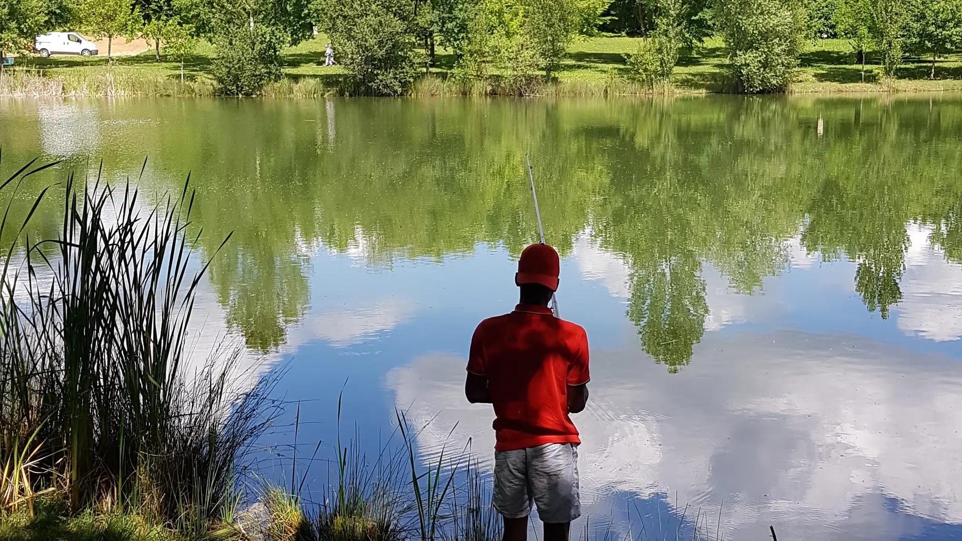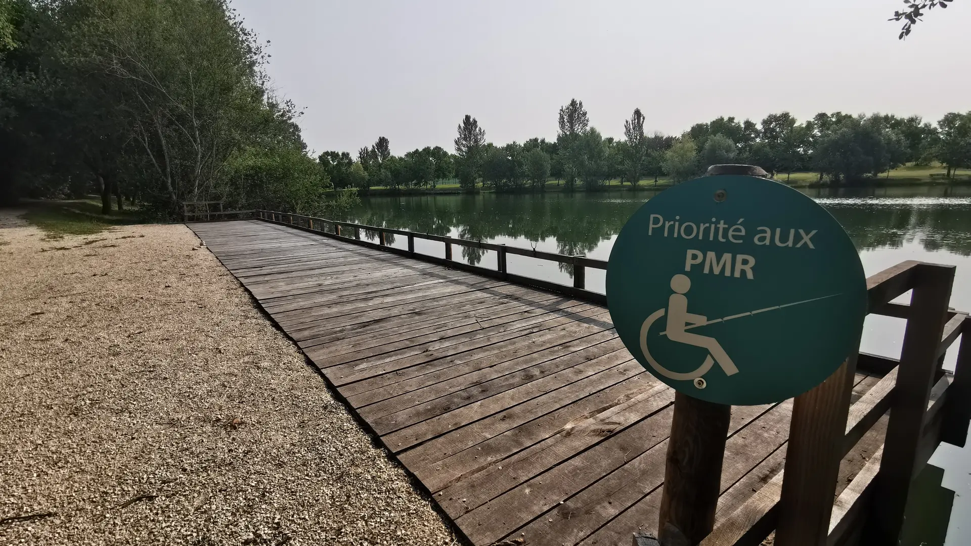 Le lac Fourquet, parc aménagé à Puylaroque, ponton de pêche