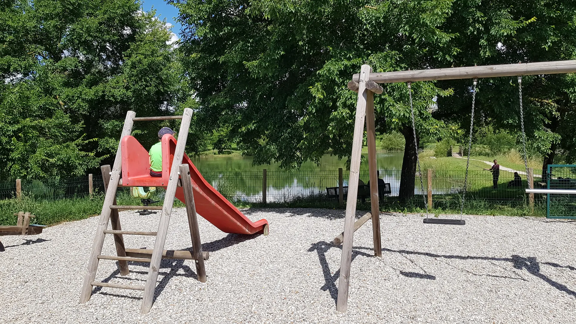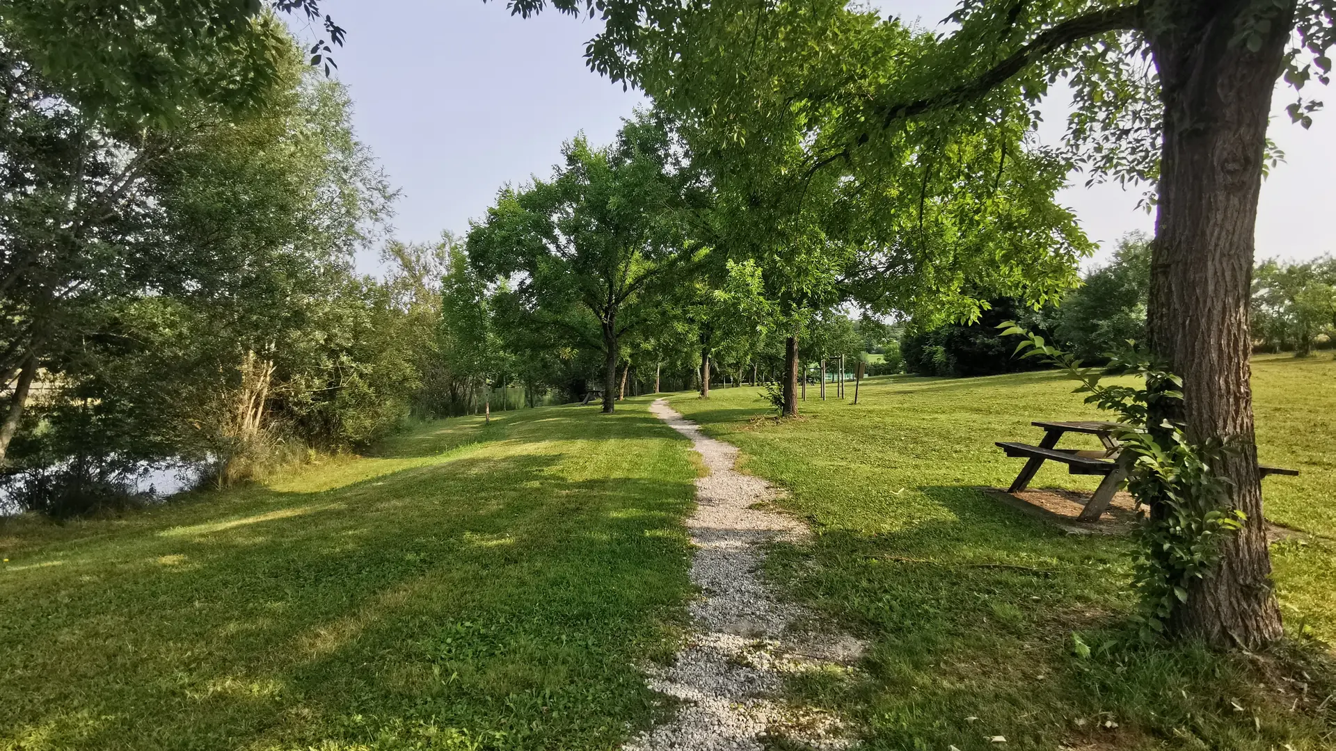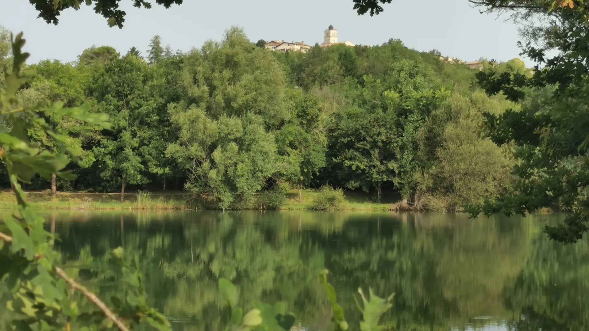 Le lac Fourquet, parc aménagé à Puylaroque, ponton de pêche