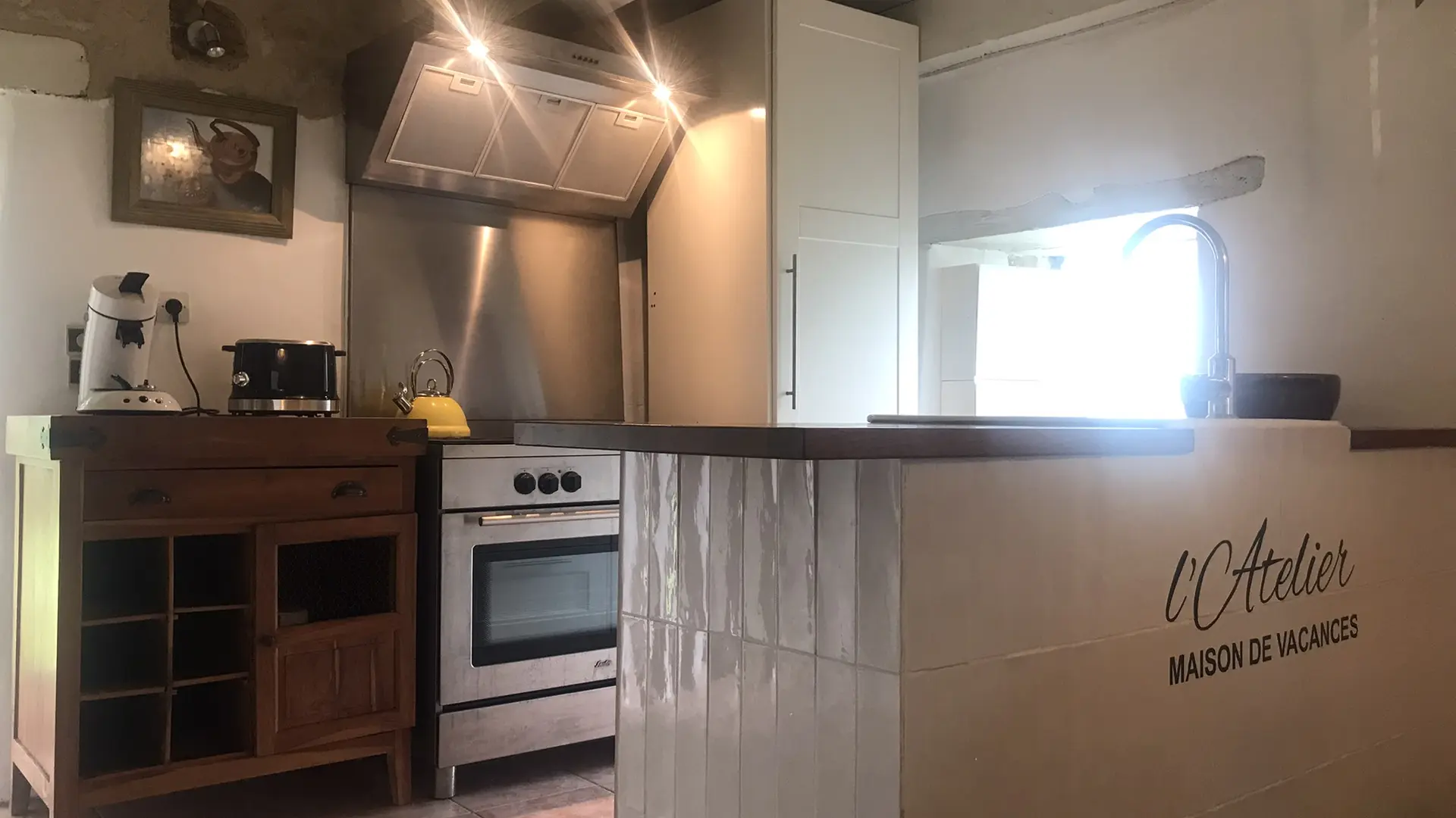 Une cuisine toute équipée : lave-vaisselle, cuisinière piano, cafetière, frigo/congélateur et rangements fonctionnels