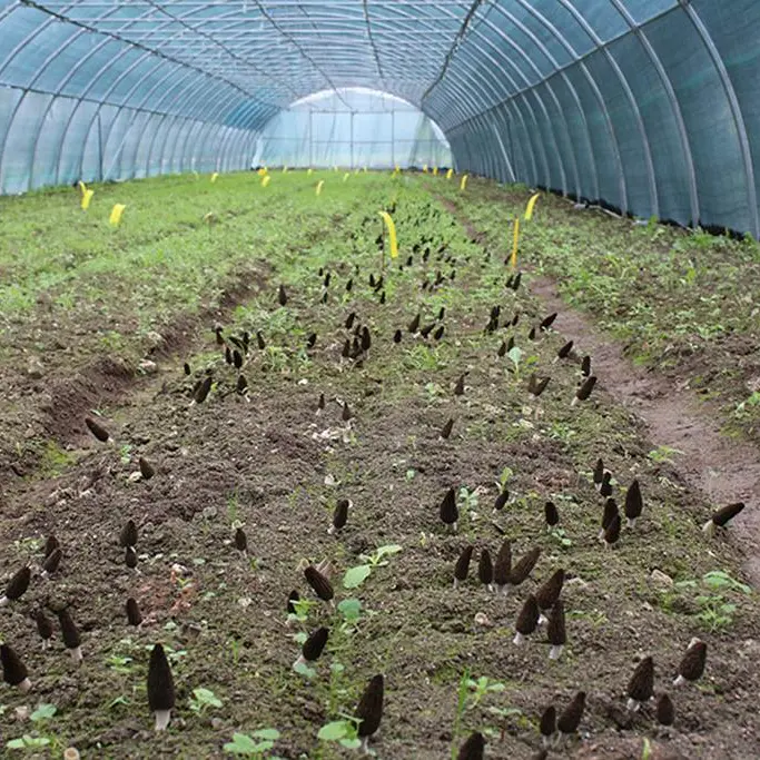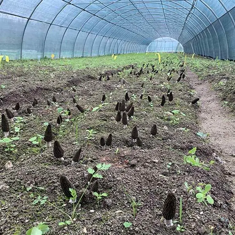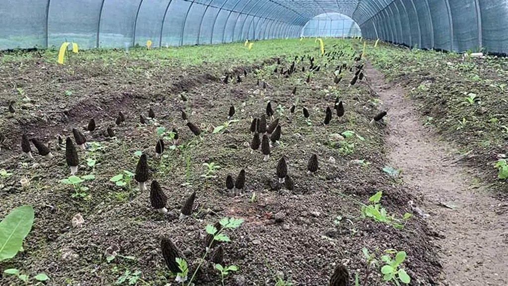 Production de morilles, un champignon noble et aux propriétés gastronomiques infinies, avec la récolte en Février et Mars.