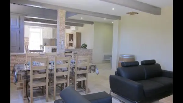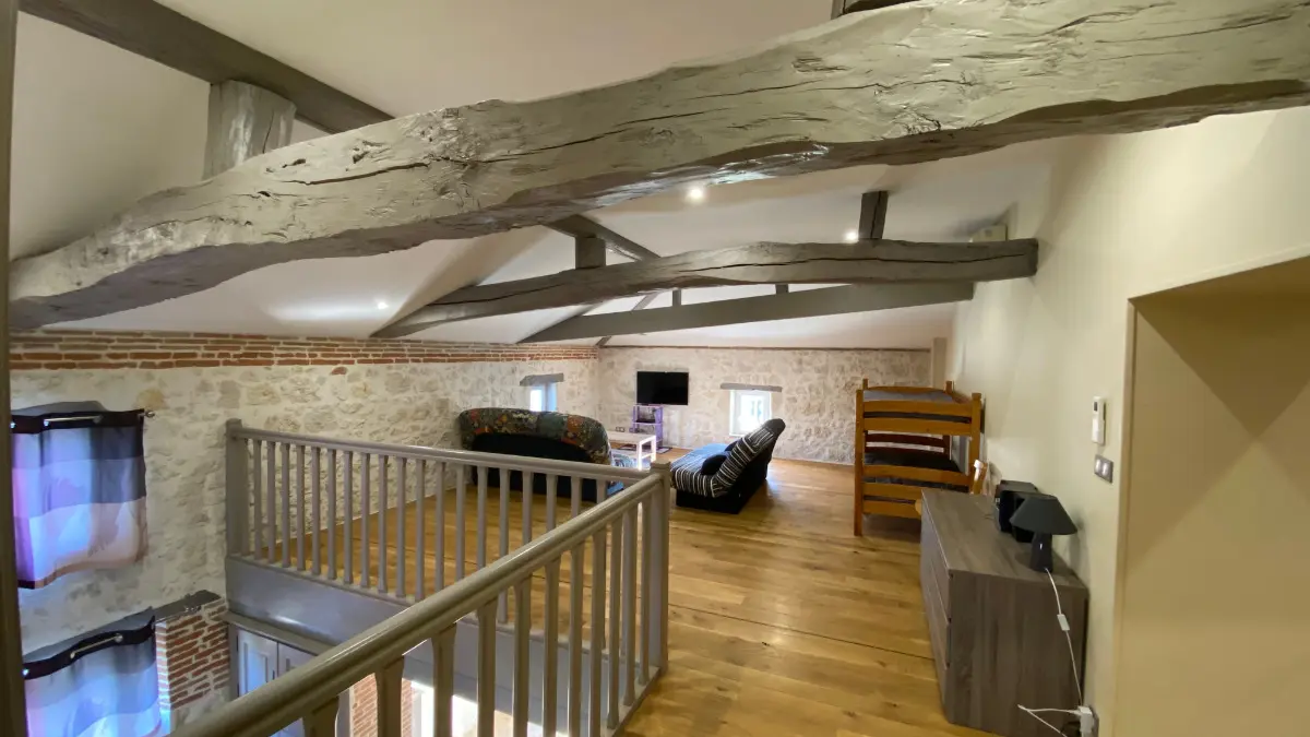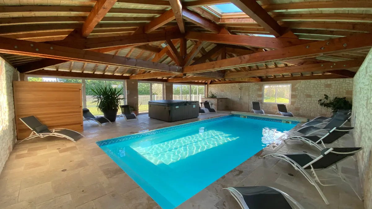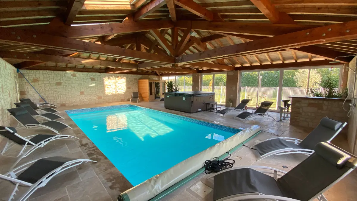 Un lieu idéal pour se ressourcer et se détendre grace à son spa et sa piscine couverte et chauffée. Au RDC : 1 grand séjour avec espace cuisine (LV, MO, cafetière électrique, réfrigérateur/congélateur...) et espace salon (2 canapés, TV écran plat). 1 ch (1 lit 140, tv écran plat) avec salle d’eau privative (douche à l’italienne...) et 1 WC ind. Une buanderie (LL, SL). A l’étage : 1 salon en mezzanine (1 canapé d’angle, 1 canapé clic-clac, TV écran plat, lecteur DVD, chaîne HI-FI, mini billard pour enfants), 1 ch (4 lits 90), 1 ch (1 lit 140) et 1 salle d’eau. 1 WC indépendant. Climatisation réversible. Petits animaux acceptés sur demande. Possibilité de louer en 10 pers : 25 €/pers. A l’extérieur : terrasse couverte avec salon de jardin et barbecue. Parking.