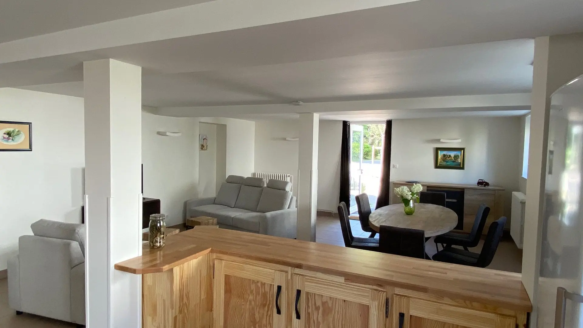 Au rez-de-chaussée, le logement comprend, un grand hall d'entrée, une très grande pièce à vivre (canapé, fauteuils table basse) table repas, chaises, TV. Une cuisine indépendante de type intégrée (micro ondes, lave vaisselle 2 réfrigérateurs, 1 congélateur, 2 plaques à induction), (wc indépendant dont 1 accessible personne à mobilité réduite avec lave-mains), buanderie avec sèche linge et et lave linge). Au 1er étage 2 ch (2 lits 0,80 rapprochables avec salle d'eau privative et wc chacune), 1 chambre (3 lits 0,80 dont 2 rapprochables), 1 salle d'eau privative avec wc. Au 2ème étage : 1 ch (2 lits 0,80 rapprochables avec salle d'eau privative et wc), 1 chambre (3 lits 0,80 dont 2 rapprochables), 1 salle d'eau privative avec wc. 1 espace détente. Terrasse 85 m2 avec salon de jardin, Espaces extérieur avec salon de jardin.