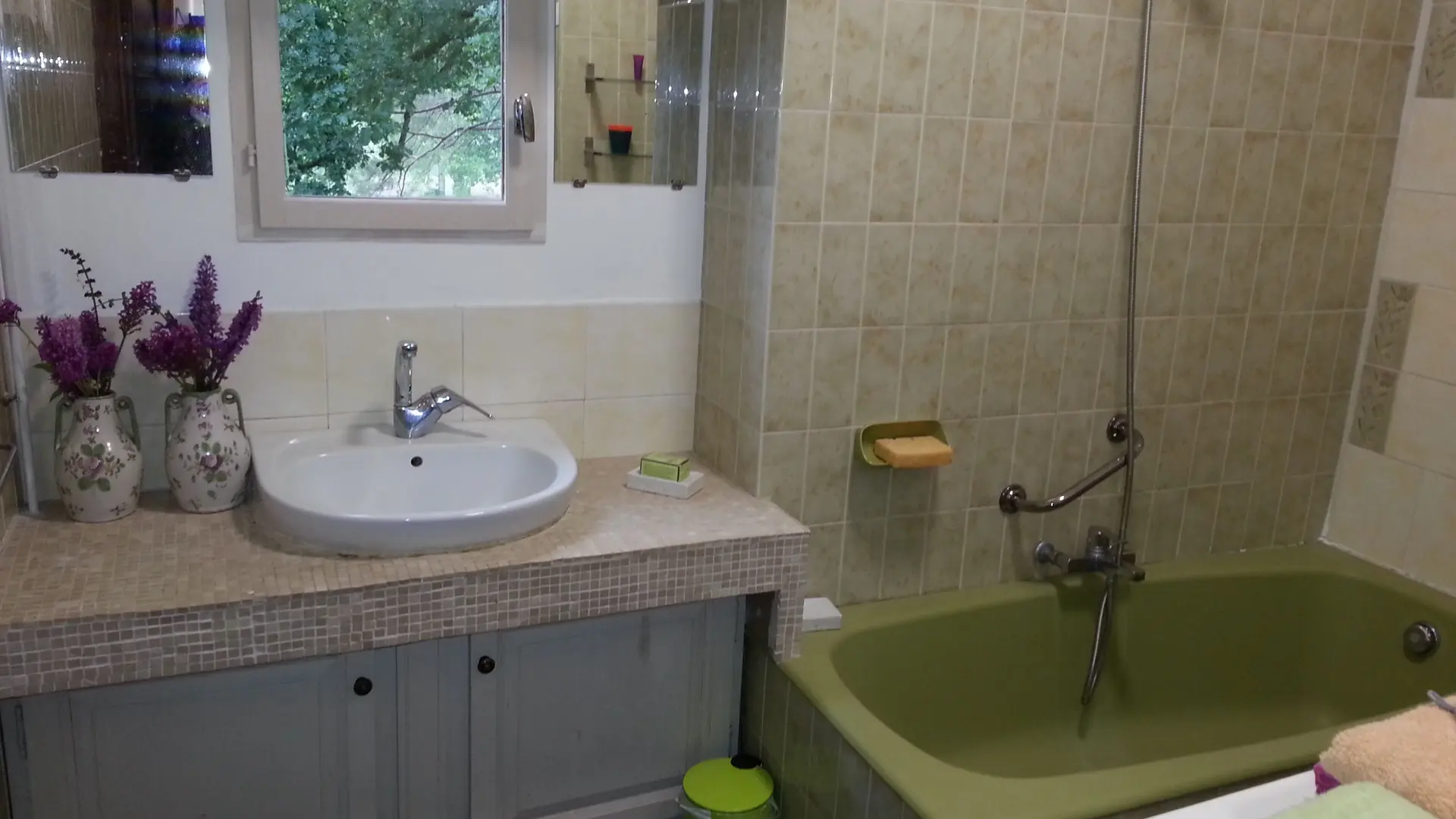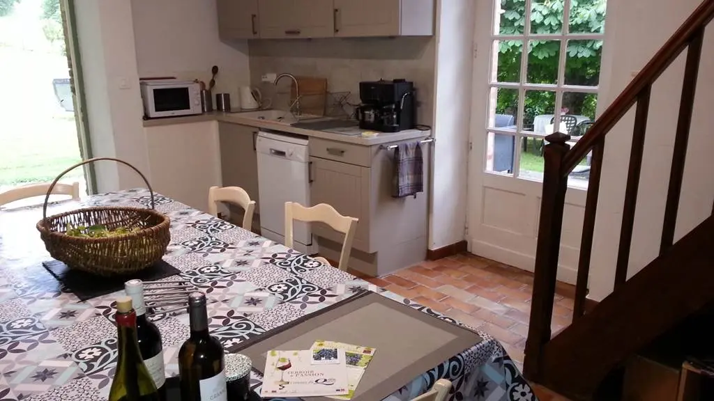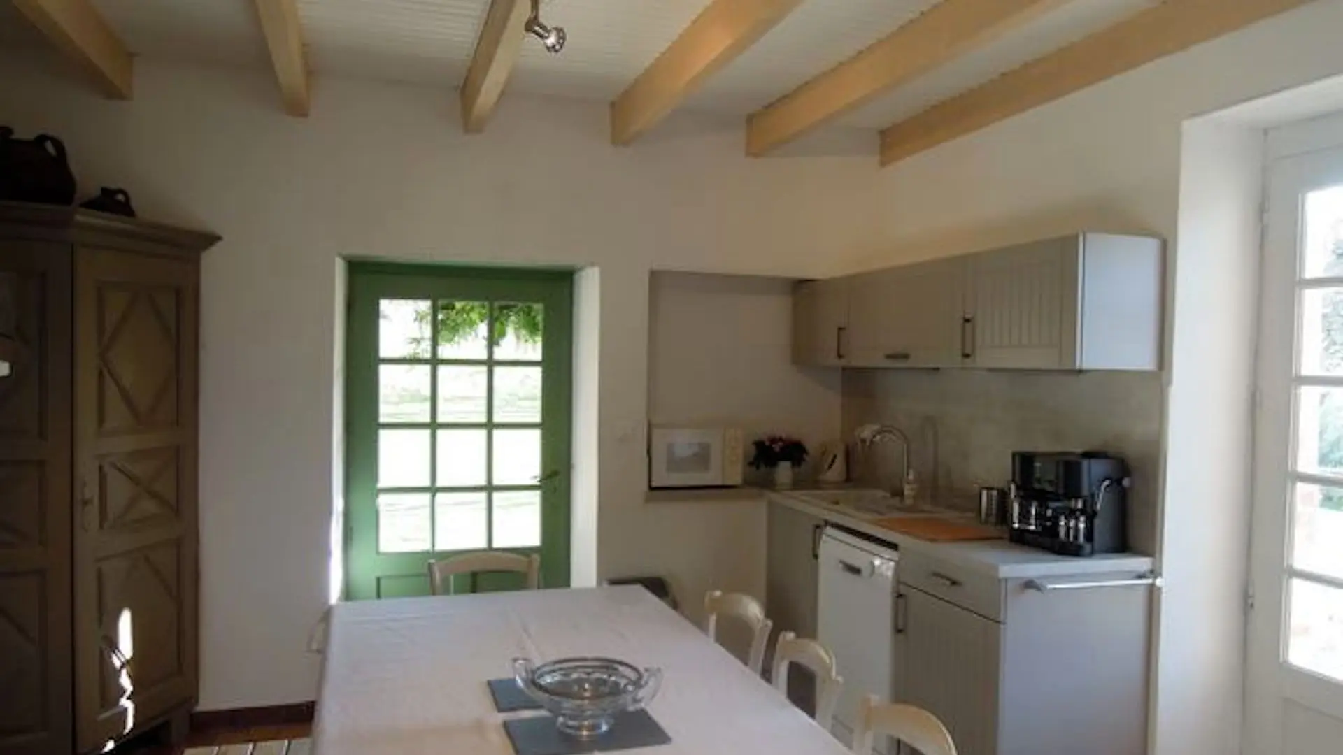 Au rez-de-chaussée, une cuisine avec cheminée (LV, LL micro-ondes, gazinière mixte avec 3 feux gaz + 1 plaque et four électrique, frigo/congélateur, Expresso percolateur, cafetière), un séjour salon (1 canapé, table (12 pers) chaises cheminée) , 1lit en 0,80, 2 chambres (1 lit 2 pers en 140 chacune), 1 chambre enfant (2 lits superposés et 1 lit en 0,80), 1 salle de bain, 1 wc indépendant. Au 1er étage, 1 chambre (1 lit 2 pers en 140 et 1 lit en 0.80) avec salle d'eau privative avec wc. 2 terrasses avec salon de jardin, barbecue, mobilier de jardin divers dans le parc. jeux de ballons et badminton.