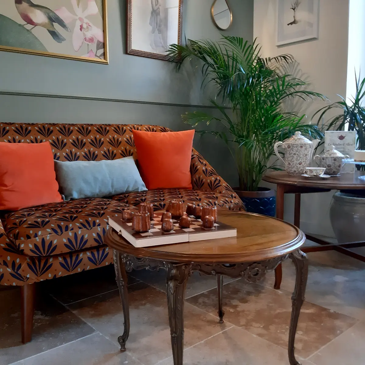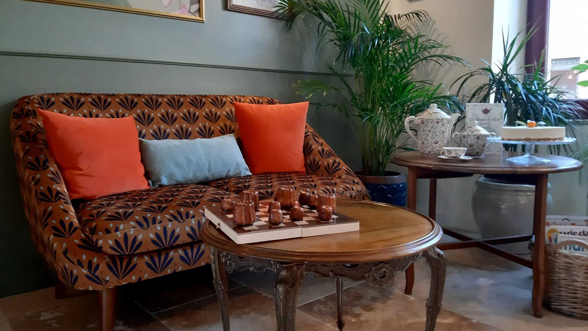 Salon de thé, parts de tartes, pâtisserie, thés et infusions bios , bières et vins régionaux. Vente d'artisanat local, ateliers divers et expositions temporaires. Terrasse ombragée et salle climatisée.