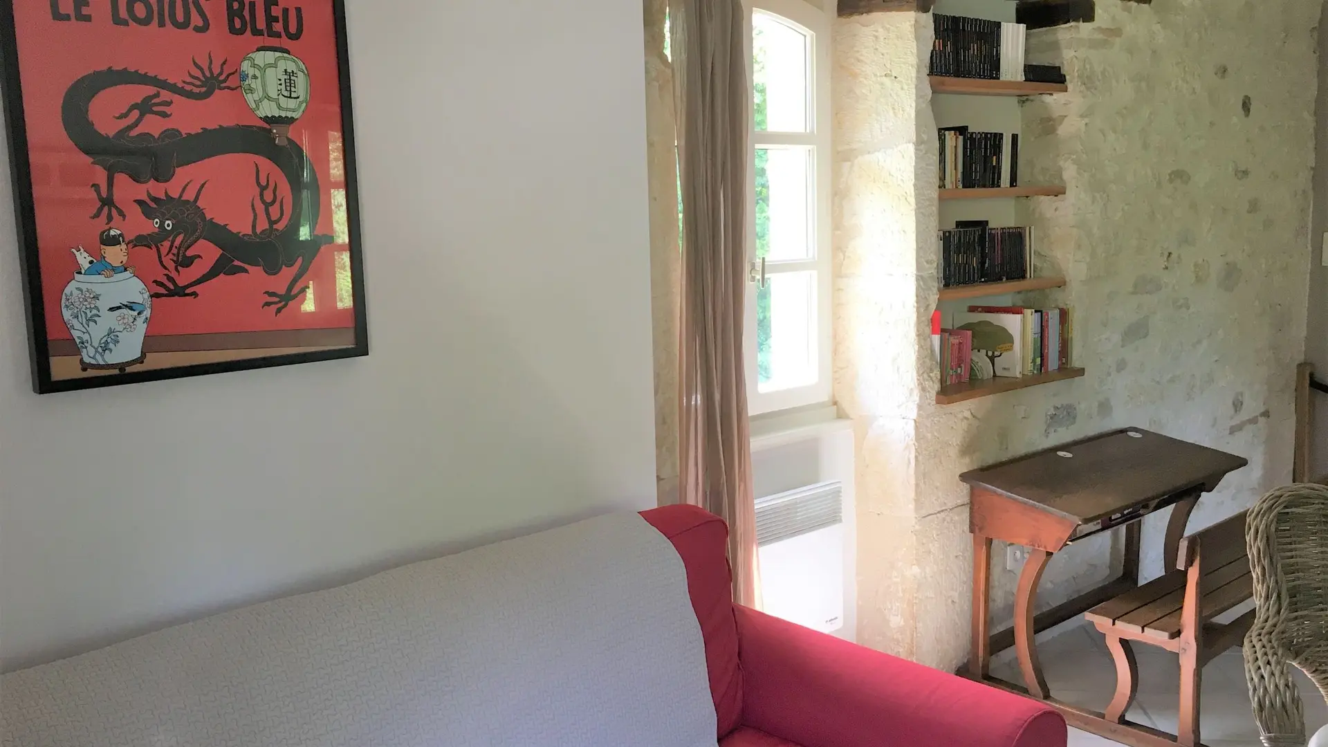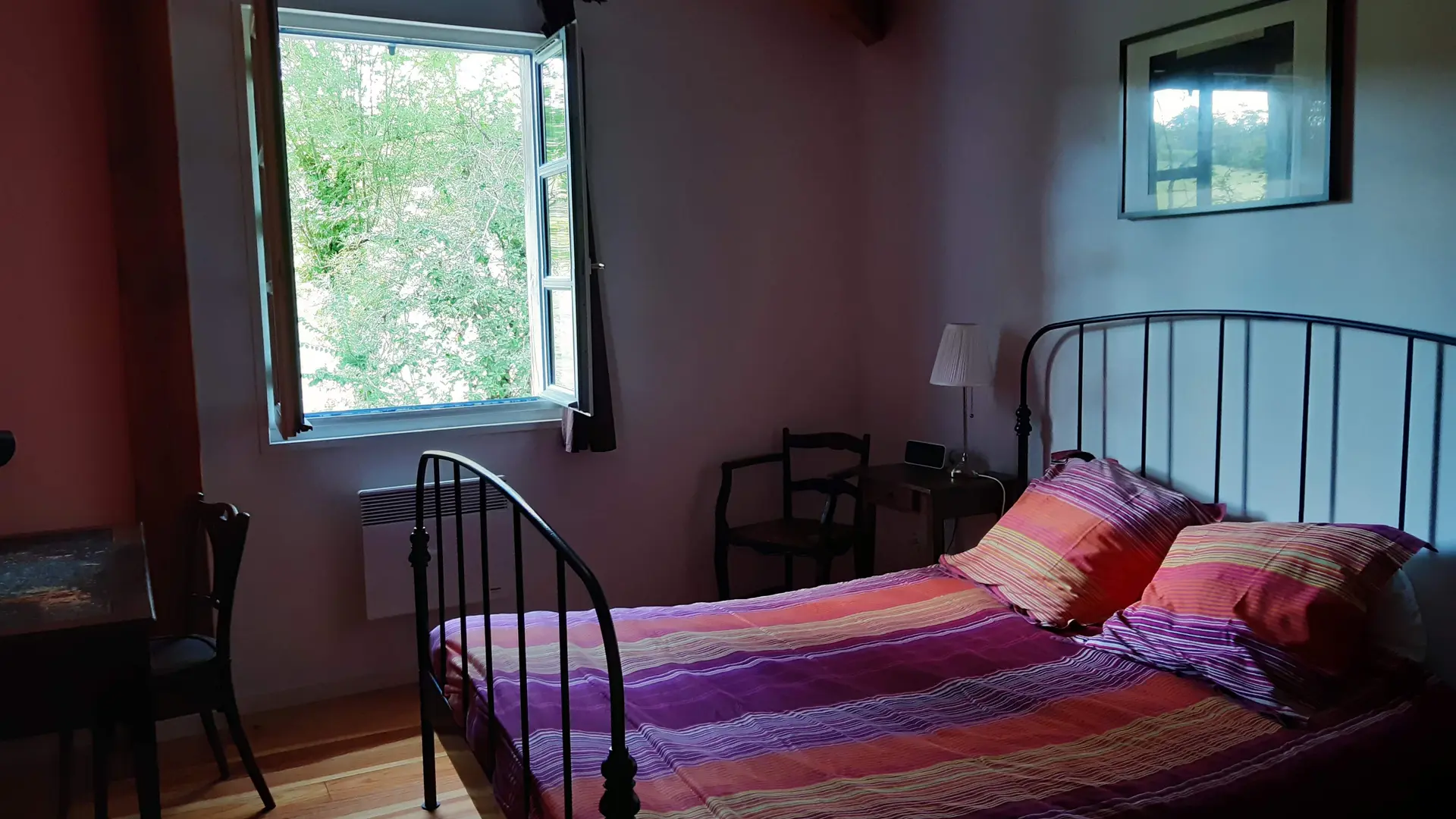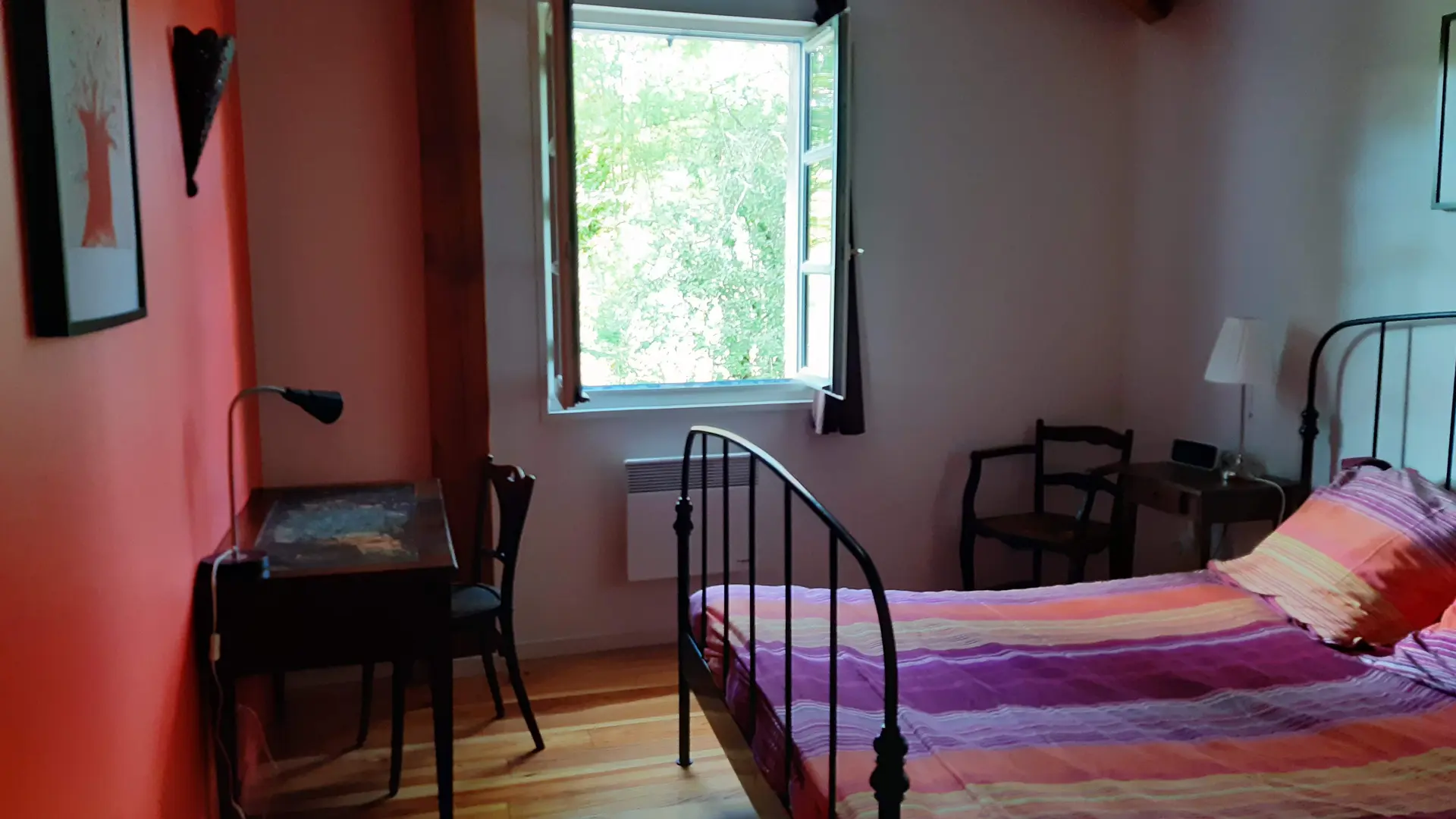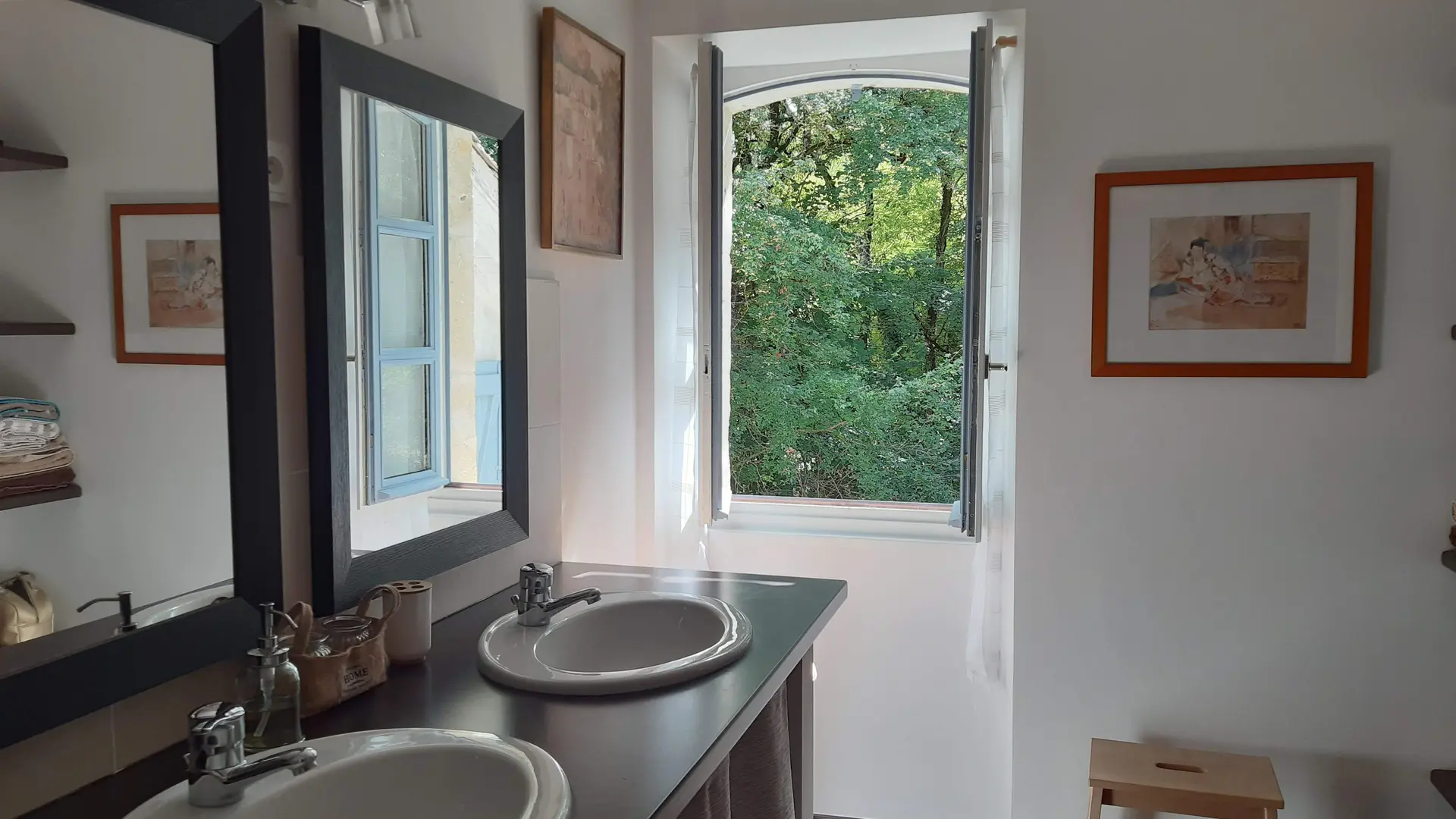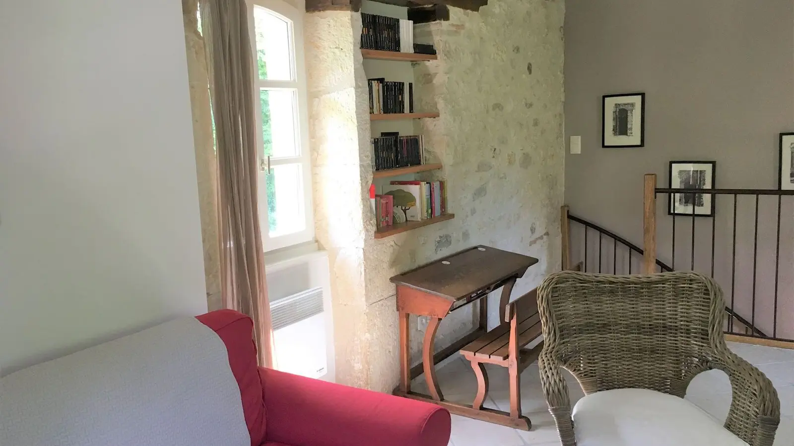 Au rdc : une salle (25 m2) où jadis les meules du moulin fonctionnaient servant de hall d'entrée spacieux, avec un wc et vestiaire, donnant sur un séjour (32 m2) avec un vaste espace cuisine (éléments intégrés (lave-vaisselle, plaques, four, réfrigérateur, congélateur, micro-ondes), un cellier (LL, SL). A l'étage : salon (canapé, fauteuil, TV, lecteur DVD, petit bureau d'écolier), 1 ch (1x160), 1 ch (1x140), 1 ch (2x90), sdb, WC. indépendant. Terrasse (40 m2) avec 2 salons de jardin, barbecue, transats. Terrain privé non clos (900 m2). Equipement bébé sur demande : lit, chaise haute, baignoire. Le prix comprend : le chauffage, l'électricité, la taxe de séjour. En option : loc draps, linge de maison et de toilette, ménage. Pas de wifi.