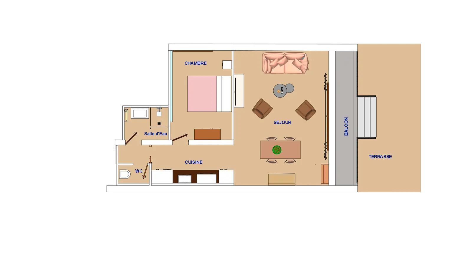 • Une chambre (11 m²) avec 1 lit en 160