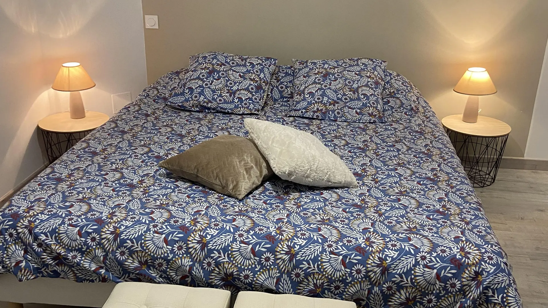 Au 2ème étage : une chambre lit double, télévision et placard.