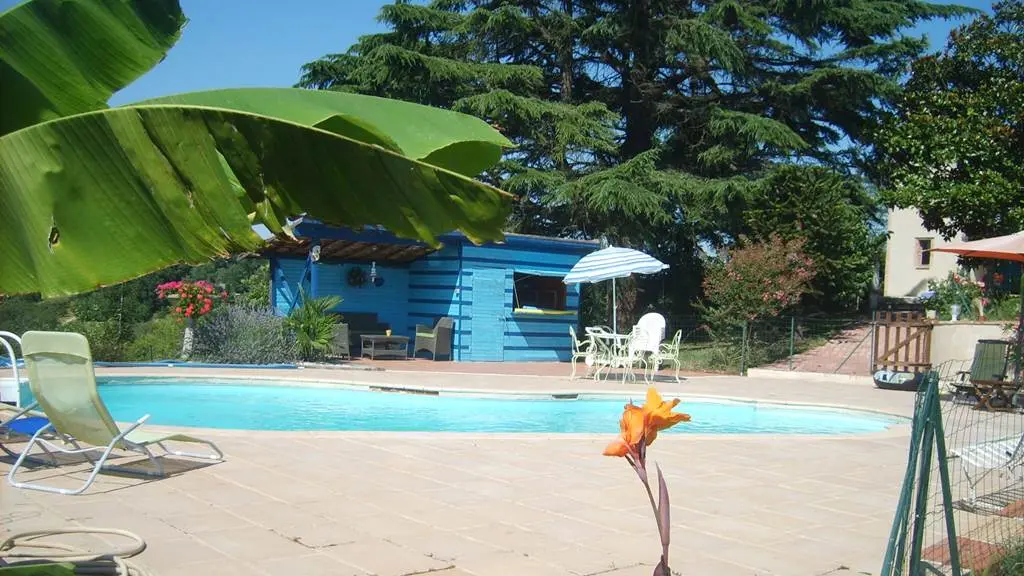 La piscine, privée à la location, offre un magnifique point de vue. Elle dispose d'une terrasse et d'une paillote.