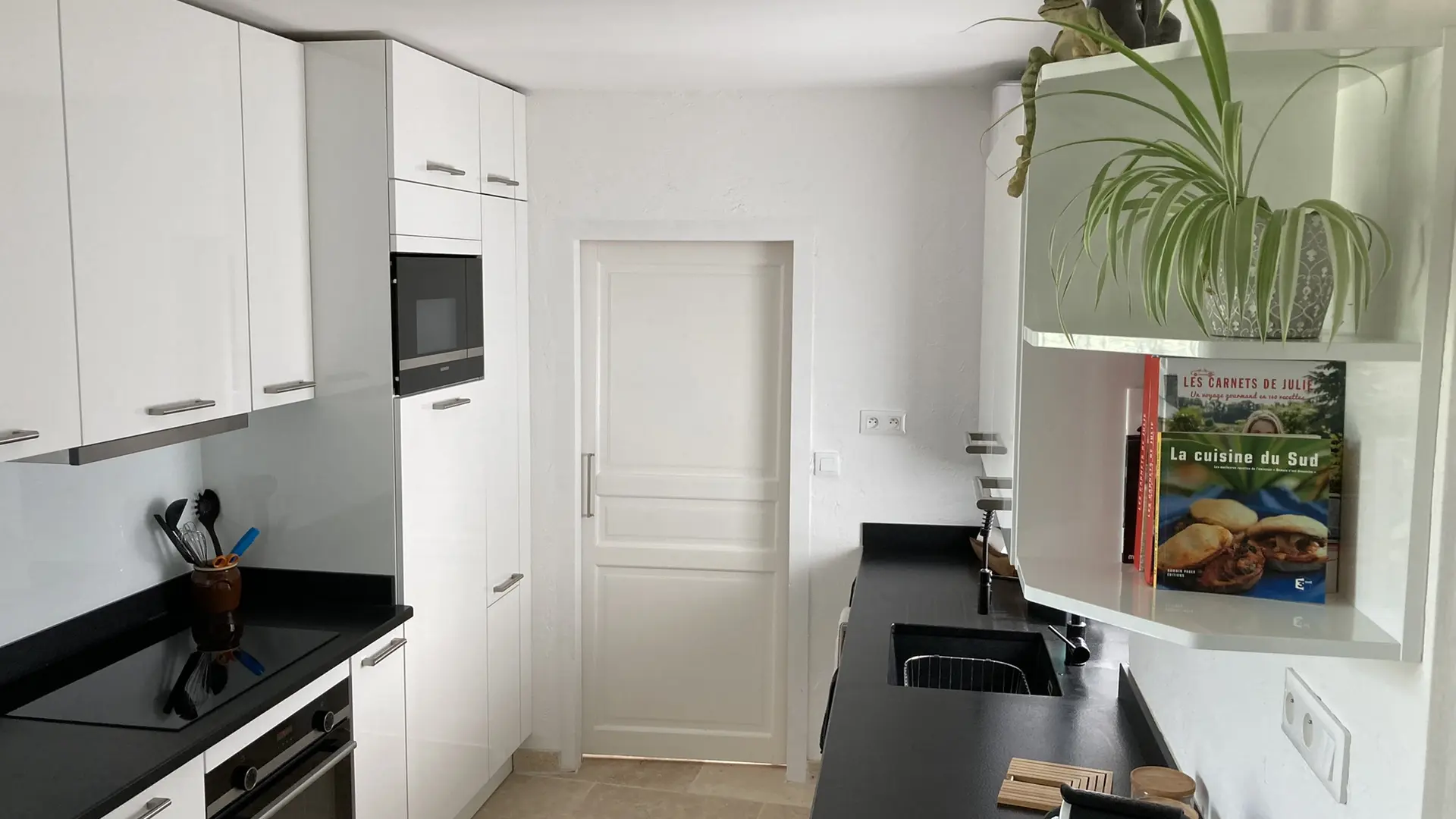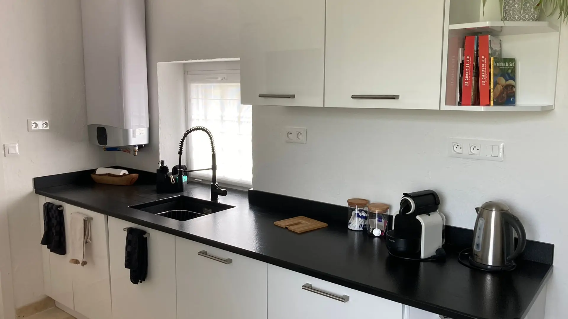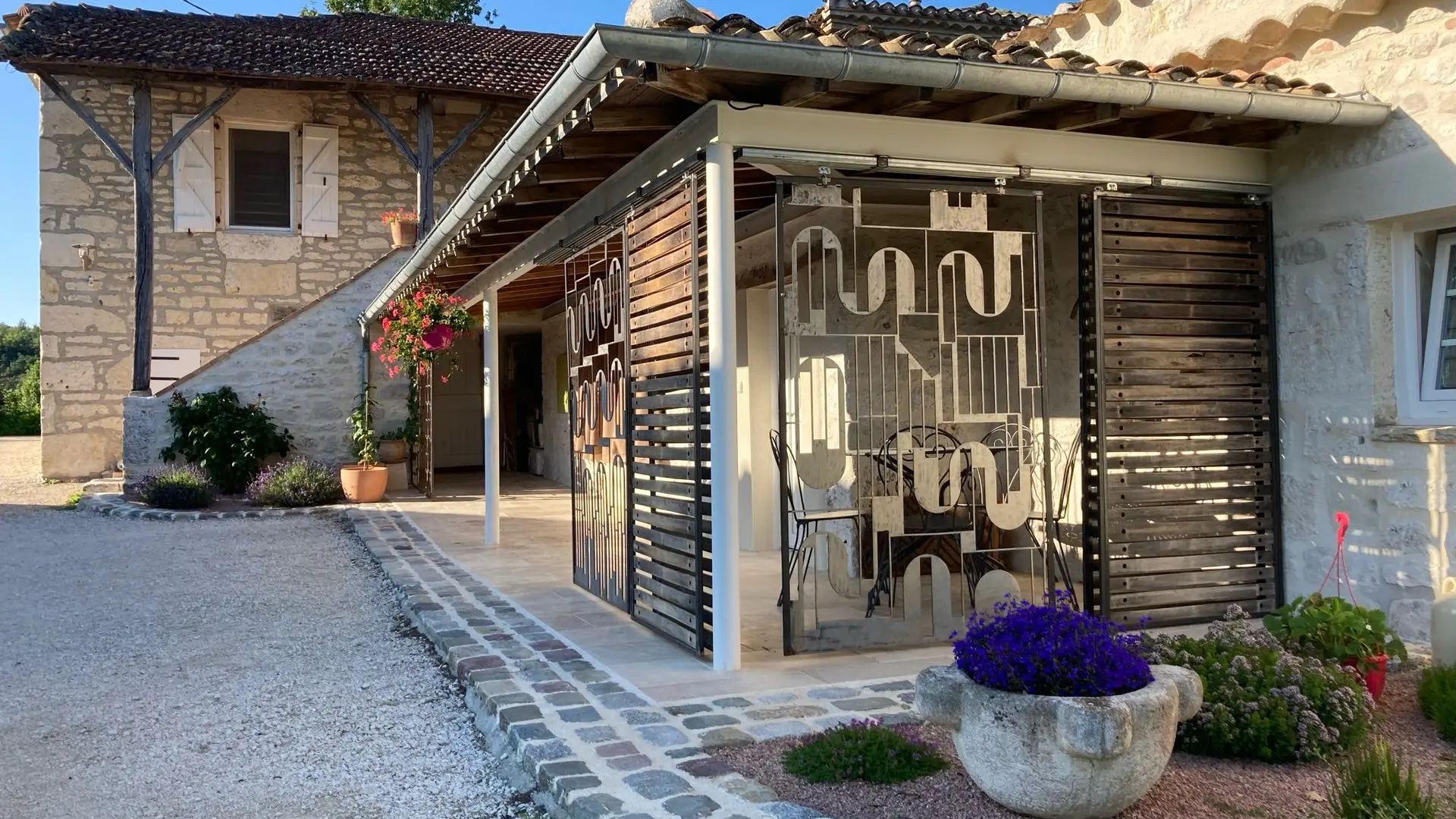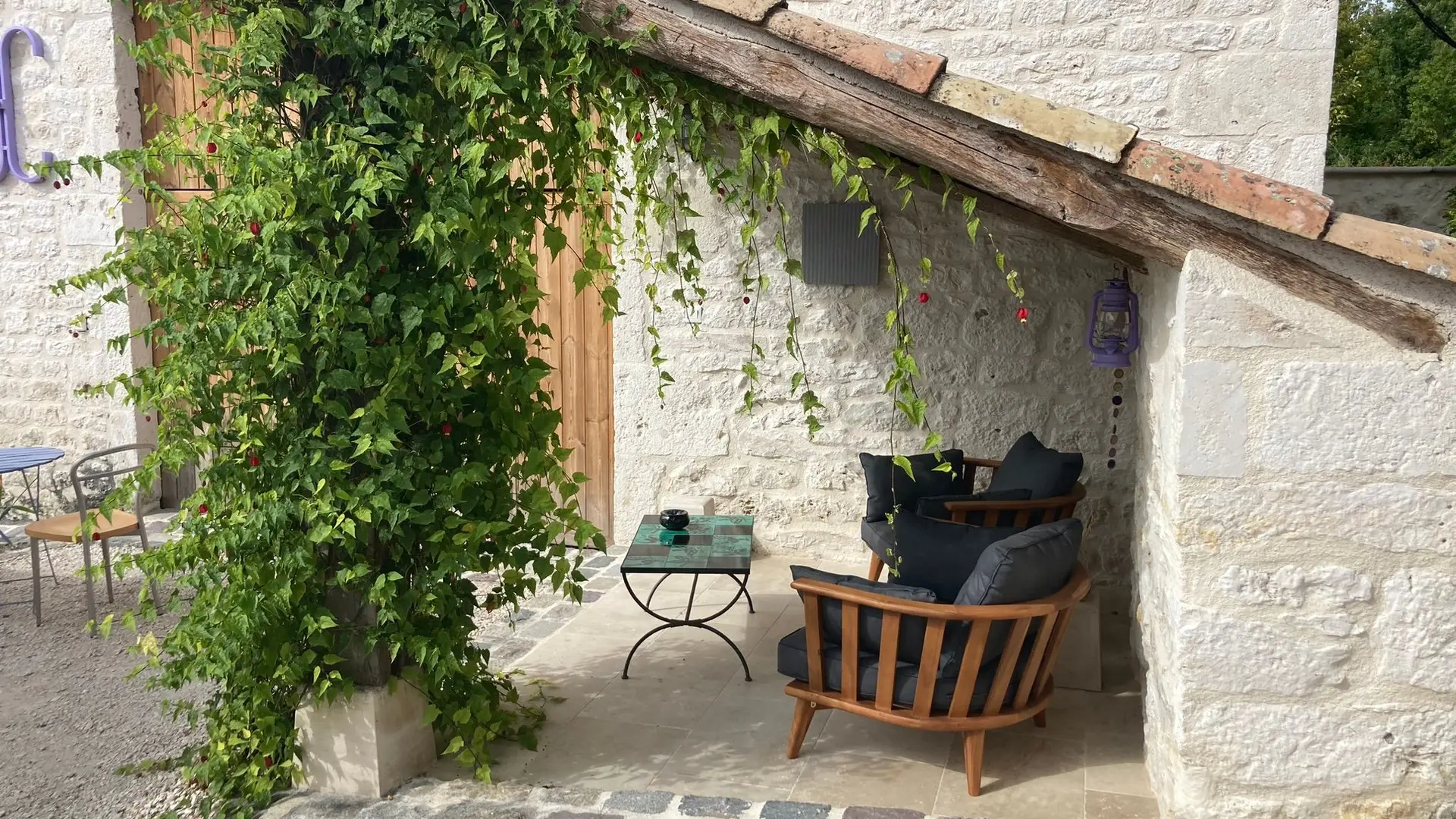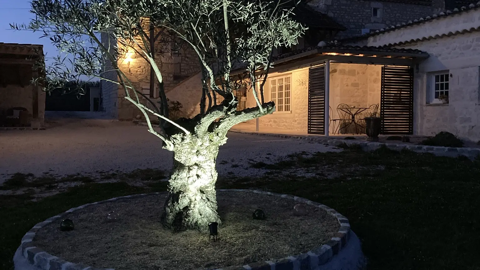 Tout un ensemble fait de plusieurs bâtiments composent ce lieu magique : dans le premier bâtiment, une cuisine intégrée (lave-vaisselle, lave-linge, micro-ondes, four, plaque, hotte, réfrigérateur), table haute avec tabourets, une chambre (lit King size pouvant être séparé en lits jumeaux, tables de nuits, fauteuils, table basse, armoire), une salle d'eau avec wc et une terrasse avec table et chaises. Dans la grange annexe, un salon avec fauteuils, TV, jeux de société, table de ping-pong, vélo d'appartement, livres... le tout exclusivement réservé et privatif aux hôtes. De cette grange accès direct à la piscine avec sa cuisine d'été complète exclusivement réservée aux hôtes, aquabike et toilettes sèches. Wifi dans tout le logement y compris dans la grange, près de la piscine et sur les terrasses. Piscine (10X5 avec fosse à plonger 2,50m), bains de soleil, parasols, aquabike. Linge de lit, de toilette, de maison, foutas pour la piscine mis à disposition et inclus. Un adoucisseur d'eau alimente le gîte, la cuisine d'été et la douche solaire. Terrasse panoramique avec point de vue sur le golf des Roucous de Sauveterre (mobilier de jardin). Equipement pour bébé sur demande (lit parapluie, linge de lit, chaise haute, vaisselle adaptée, baignoire). Sur place borne de recharge électrique pour véhicule électrique ou hybride.