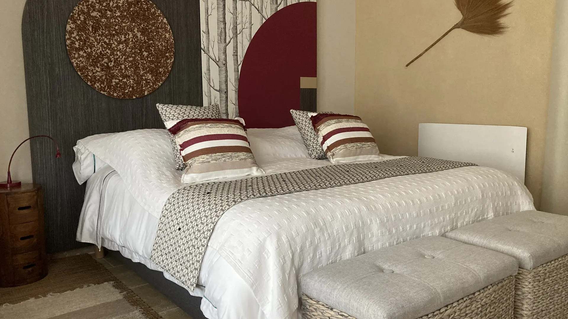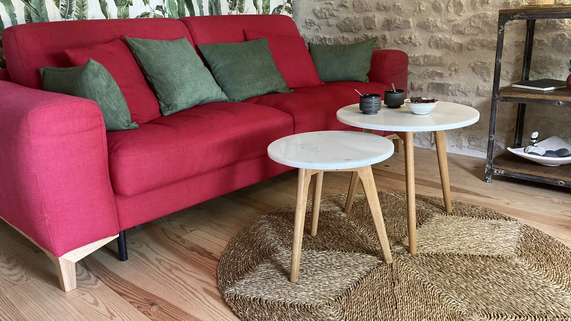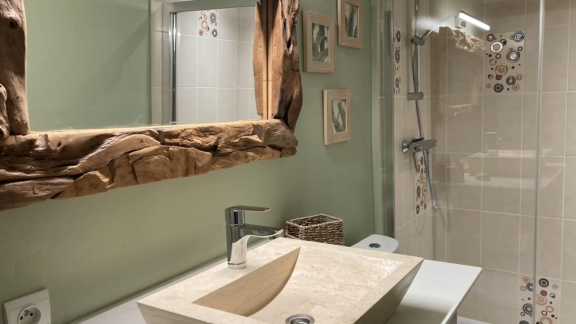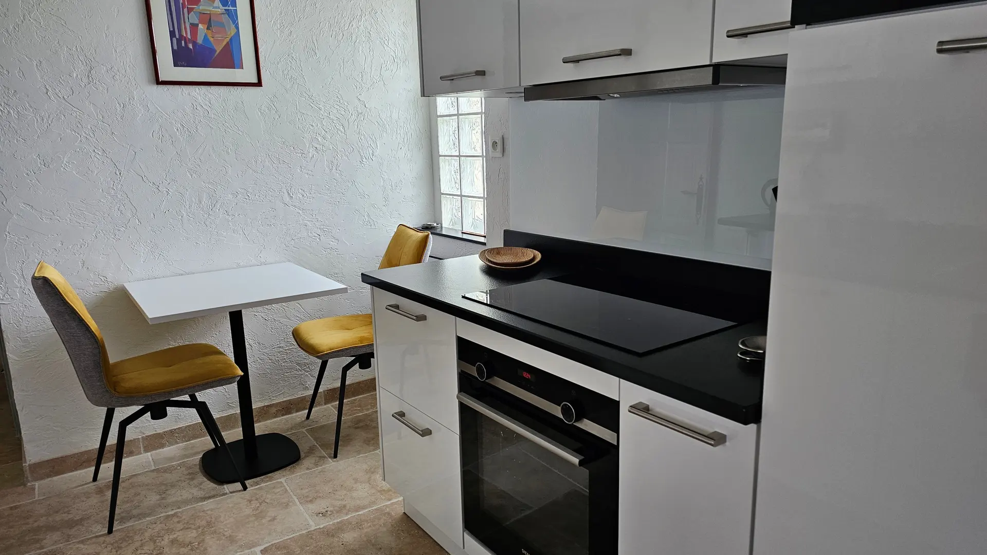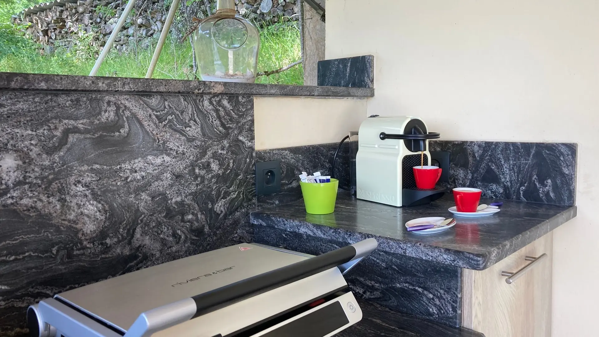 Tout un ensemble fait de plusieurs bâtiments composent ce lieu magique : dans le premier bâtiment, une cuisine intégrée (lave-vaisselle, lave-linge, micro-ondes, four, plaque, hotte, réfrigérateur), table haute avec tabourets, une chambre (lit King size pouvant être séparé en lits jumeaux, tables de nuits, fauteuils, table basse, armoire), une salle d'eau avec wc et une terrasse avec table et chaises. Dans la grange annexe, un salon avec fauteuils, TV, jeux de société, table de ping-pong, vélo d'appartement, livres... le tout exclusivement réservé et privatif aux hôtes. De cette grange accès direct à la piscine avec sa cuisine d'été complète exclusivement réservée aux hôtes, aquabike et toilettes sèches. Wifi dans tout le logement y compris dans la grange, près de la piscine et sur les terrasses. Piscine (10X5 avec fosse à plonger 2,50m), bains de soleil, parasols, aquabike. Linge de lit, de toilette, de maison, foutas pour la piscine mis à disposition et inclus. Un adoucisseur d'eau alimente le gîte, la cuisine d'été et la douche solaire. Terrasse panoramique avec point de vue sur le golf des Roucous de Sauveterre (mobilier de jardin). Equipement pour bébé sur demande (lit parapluie, linge de lit, chaise haute, vaisselle adaptée, baignoire). Sur place borne de recharge électrique pour véhicule électrique ou hybride.