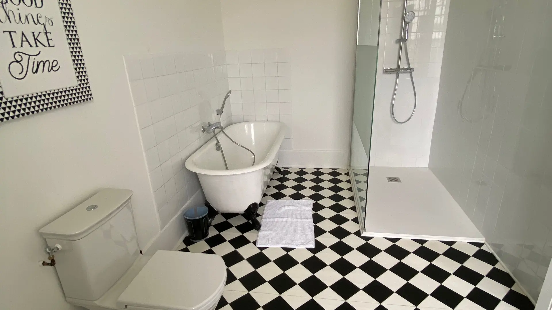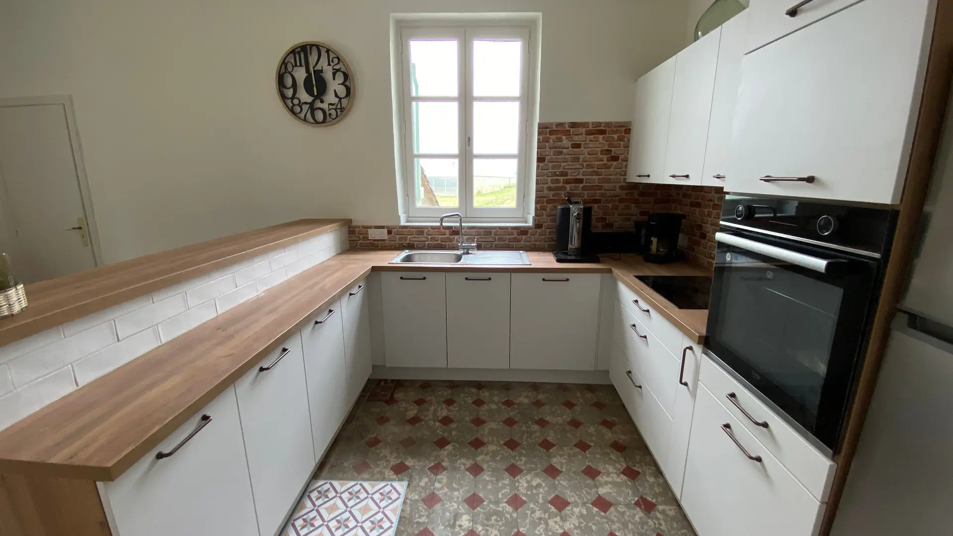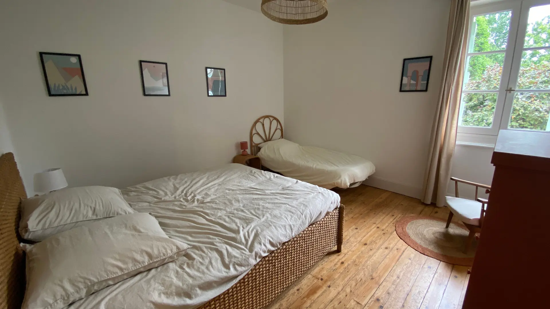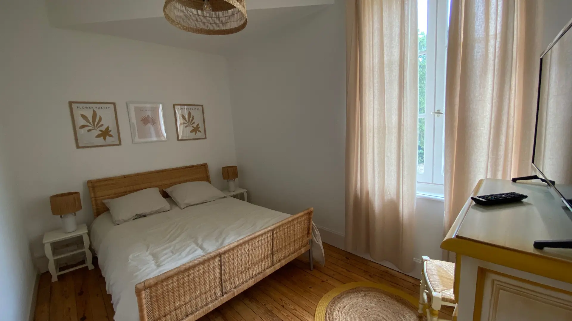 Après quelques marches, vous découvrez un grand couloir qui dessert une cuisine (éléments intégrés avec plaque, four, réfrigérateur, congélateur, lave-vaisselle), bar, une salle à manger. De l'autre côté se trouve le salon avec canapés fauteuils, TV. Par l'escalier en bois, l'étage propose deux chambres se partageant une salle d'eau avec wc et un sas de dégagement avec bureau. De l'autre côté du palier, une chambre avec 1 lit 140 et 1 lit 0,90 salle d'eau avec wc privatifs et une chambre avec 4 lits 0,90 salle d'eau et wc privatifs. Un wc au rez-de-chaussée avec lave-linge. Climatisation dans tout le gîte. A l'extérieur une grande piscine privative au gîte (10x5), jouxtant une terrasse totalement couverte avec salon de jardin chaises barbecue. Grand terrain de 3000 m2 autour du gîte clôturé.
