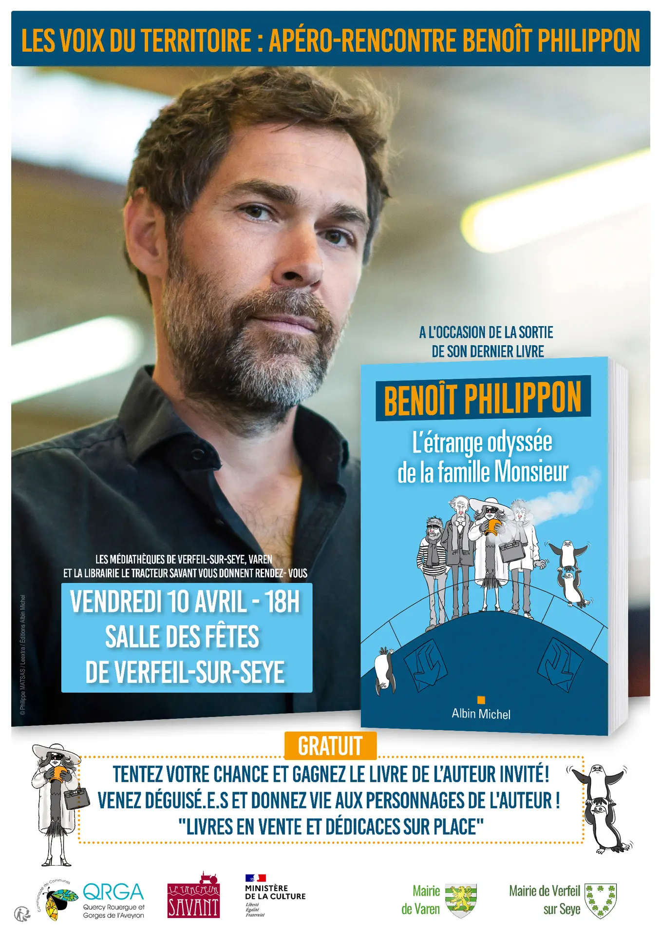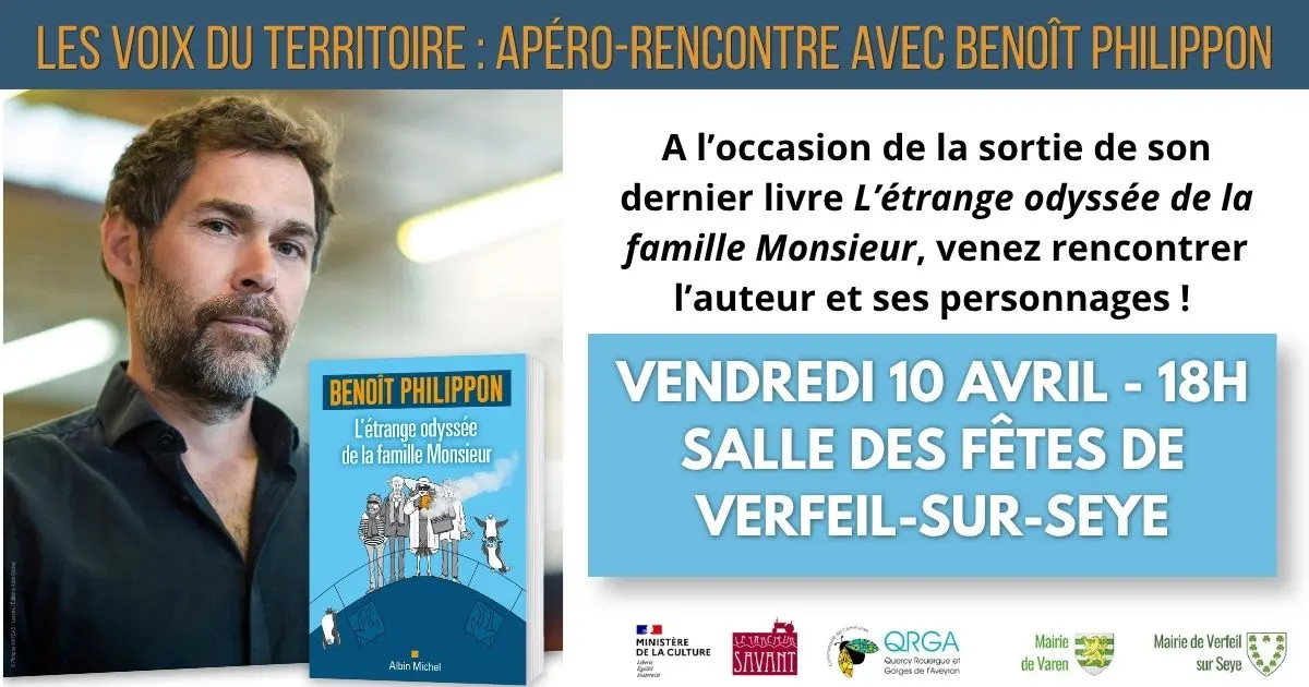 A l’occasion de la sortie de son dernier livre L’étrange odyssée de la famille Monsieur, venez rencontrer Benoît Philippon vendredi 10 avril à 18h à la salle des fêtes de Verfeil-Sur-Seye.