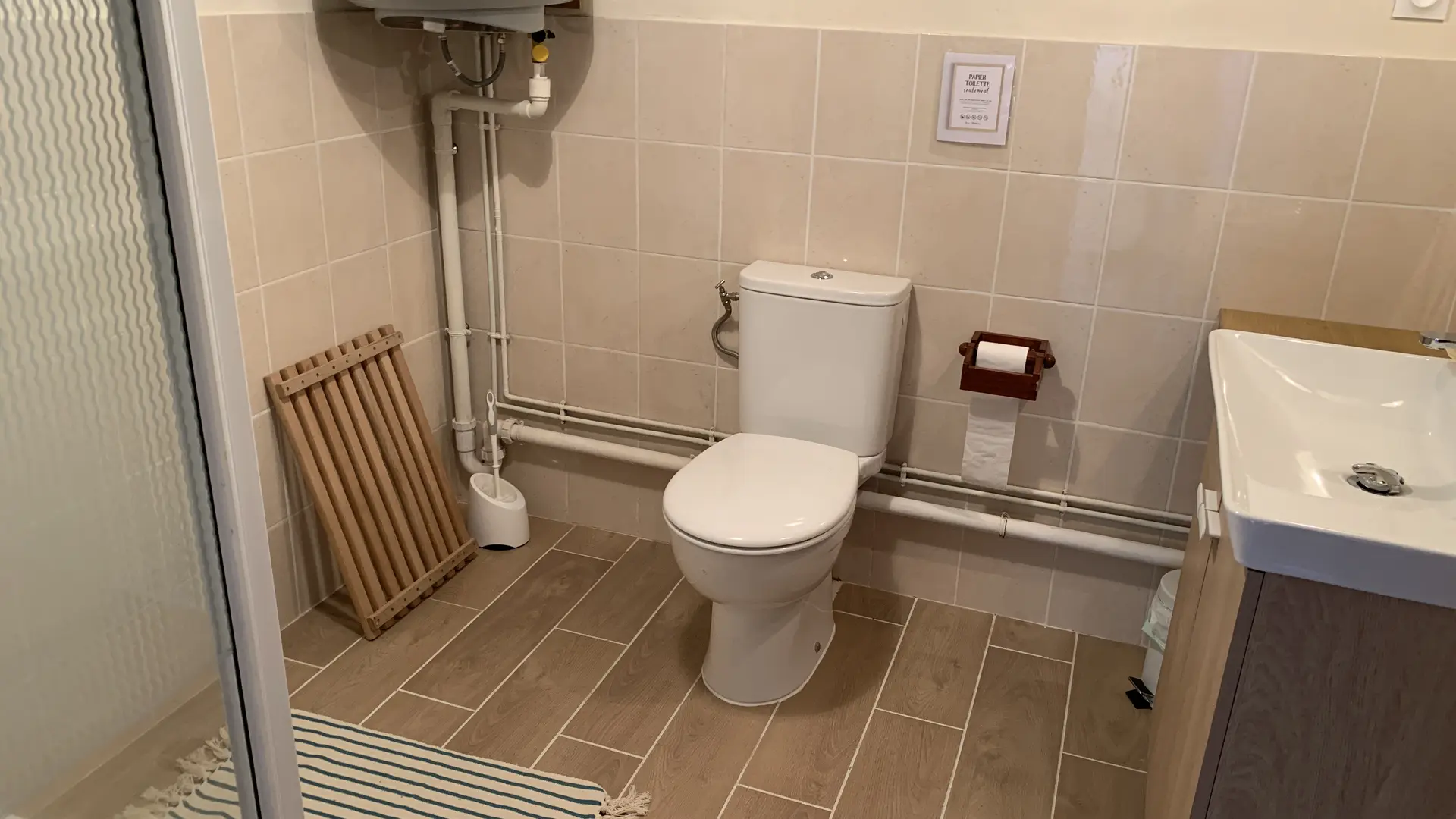 A l'intérieur : chauffage (radiateur électrique, poêle à bois), équipement bébé sur demande (lit bébé, chaise haute).