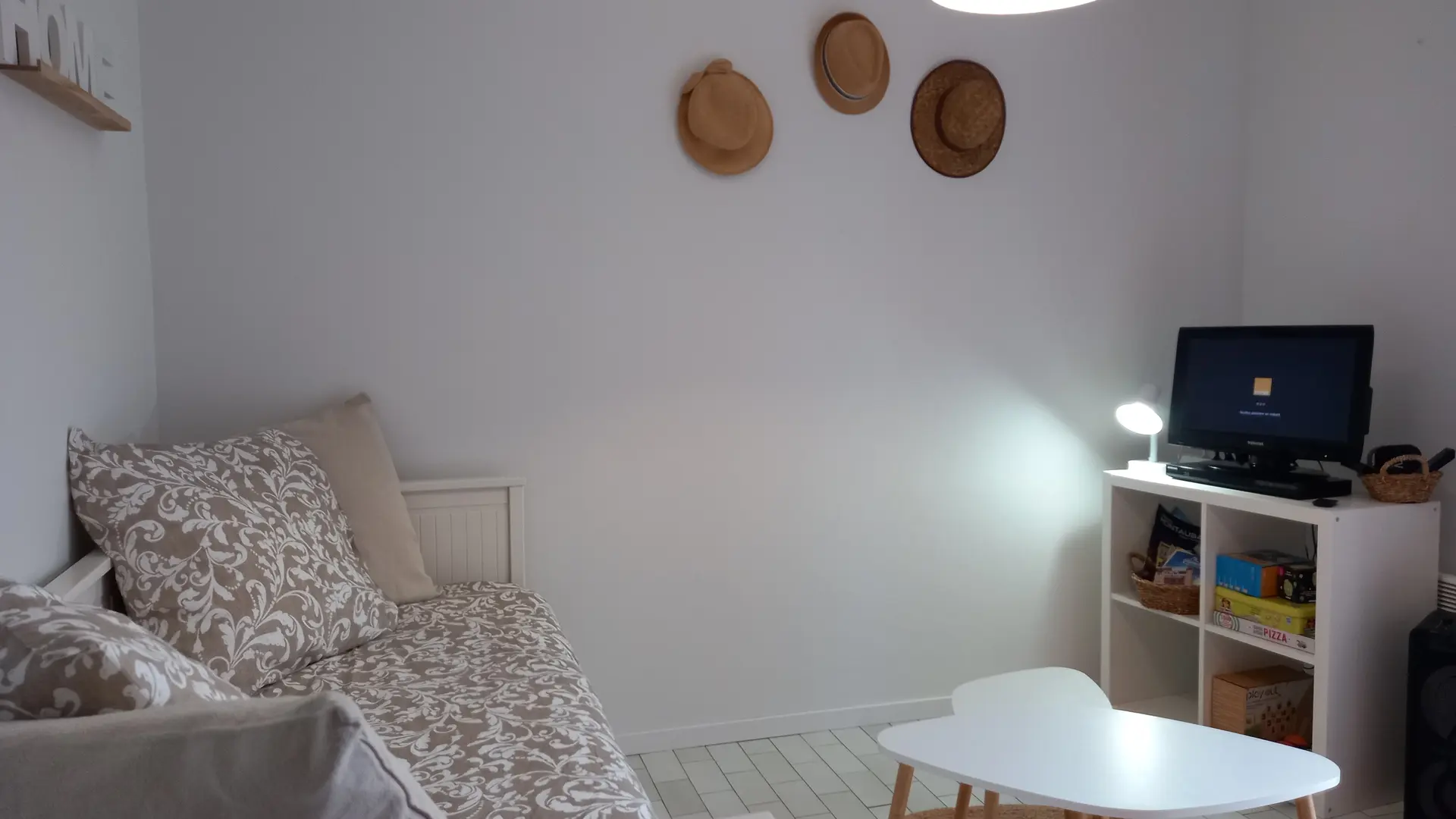 Le logement comprend : 1 salon avec lit gigogne convertible en lit 160x200, TV, une cuisine entièrement équipée, une chambre avec 1 lit 140x190, une salle d'eau avec wc.