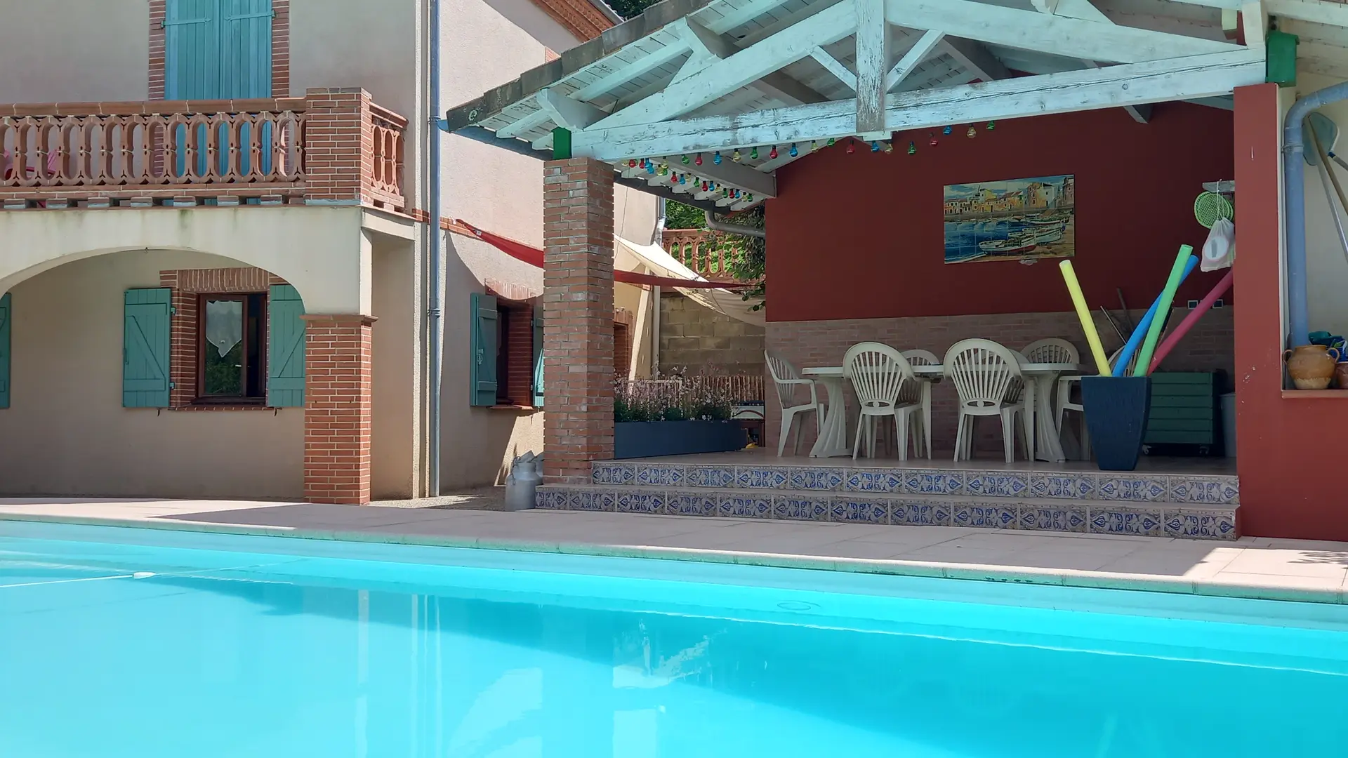 Vous disposerez d'une terrasse privative, d'un pool house avec salon de jardin, d'une piscine commune avec les propriétaires 5x10m idéale pour se rafraîchir (accessible du 15 juin au 15 septembre, selon la météo) et se détendre sous le soleil du Sud-Ouest. Portique. Parking privé.