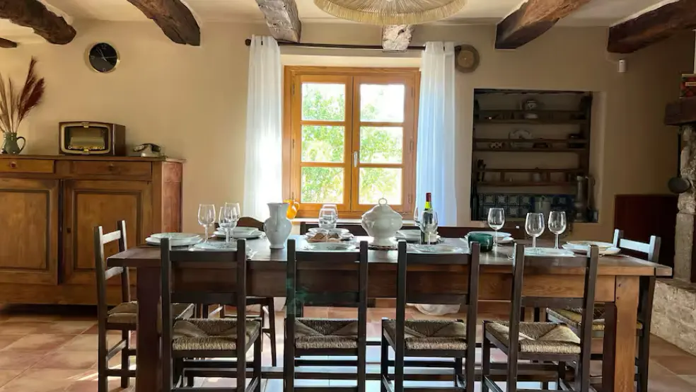 Découvrez cette belle maison typique rénovée, au cœur d’un petit village, idéale pour des séjours en famille ou entre amis avec 14 couchages. Au rez-de-chaussée, profitez d’une cuisine lumineuse entièrement équipée et d’un vaste salon-salle à manger aux poutres apparentes, ainsi que de deux chambres doubles et deux salles de bains.