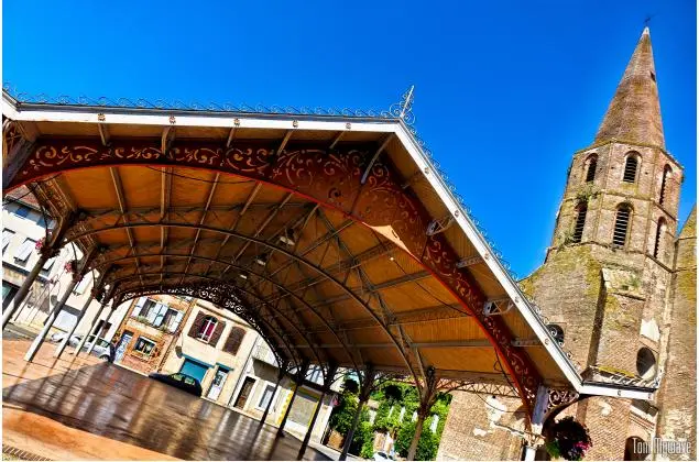 Marché convivial qui a lieu sous la halle, au cœur de ce joli petit village du sud-ouest.