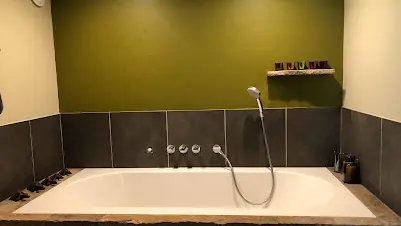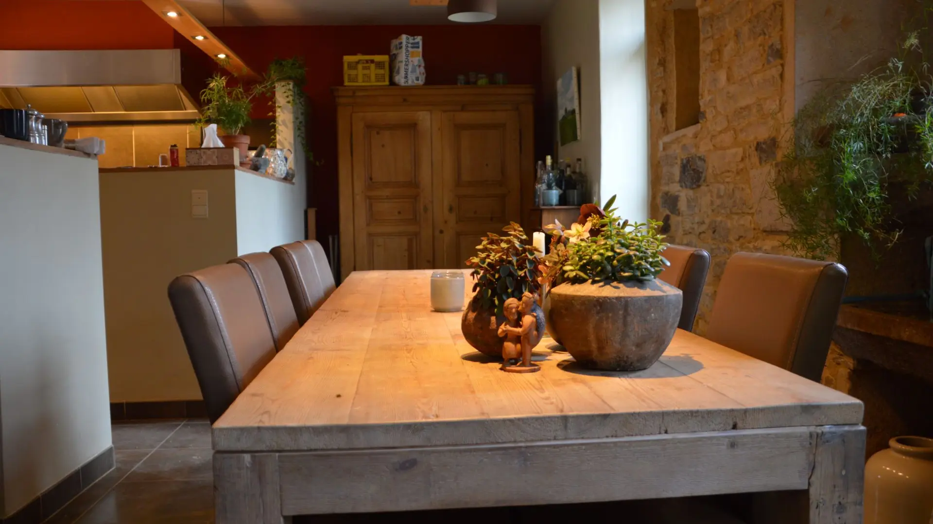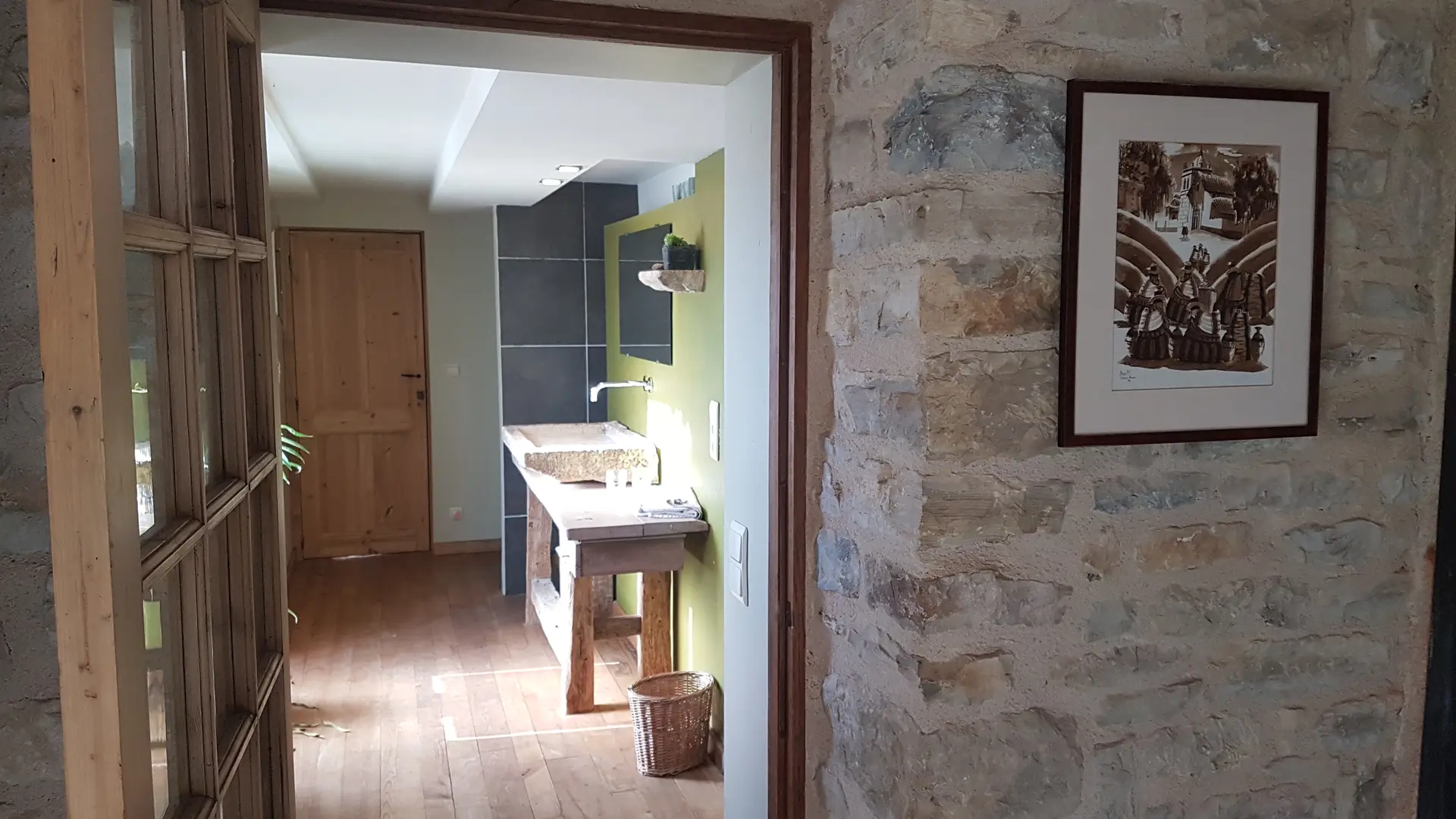 Le logement comprend au rdc : un séjour avec coin-cuisine très bien équipée (piano de cuisson, four, micro-ondes,...), un salon, 1 chambre (1 lit 160) communicante avec le rdj (2 lits 90), salle d'eau (douche XXL, WC), buanderie. Au 1er étage : 1 chambre (1 lit 160) avec salle d'eau et wc, 1 chambre (1 lit 160) avec salle d'eau et wc. En annexe : 1 chambre (1 lit 160) avec salle d'eau et wc.